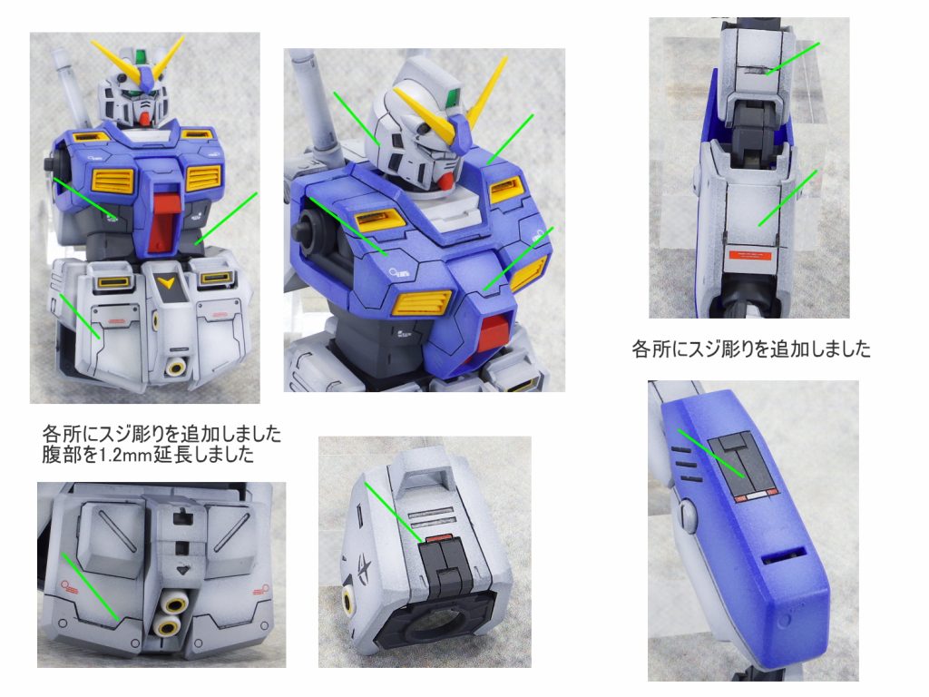 各所にスジボリにて情報量を追加して塗分け 太ももをパテにて幅…