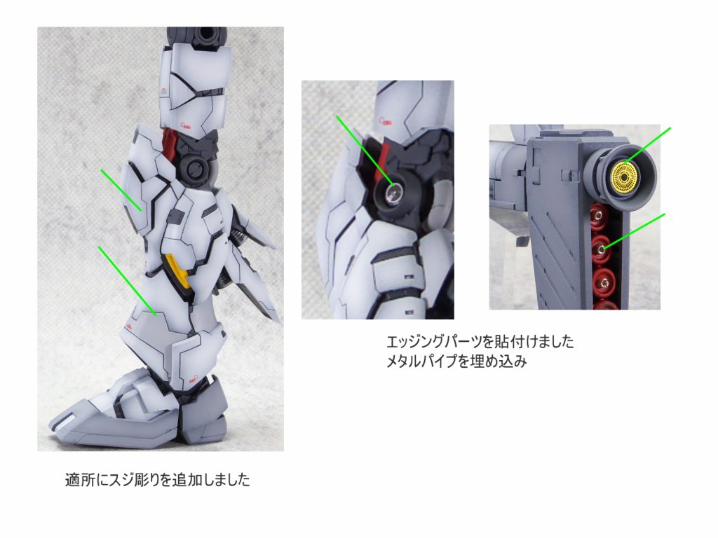 各所にスジボリにて情報量を追加して塗分け 太ももをパテにて幅…
