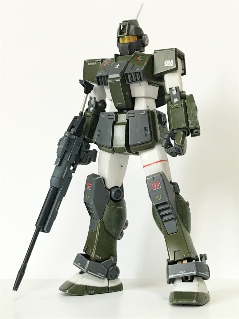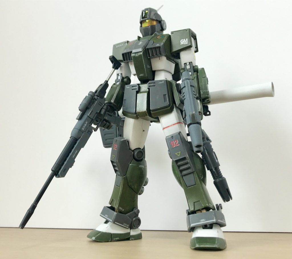 一番好きなMS、ジムスナイパーカスタムです。MGで発売された時には泣いて喜んだものです(大げさ)。そんなこんなで思い入れがあるので、ウェザリングに初トライしてみました。