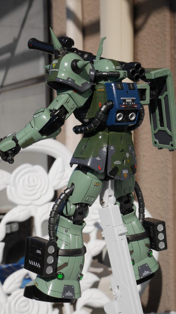 ザクはいじりがいがあり、すごく楽しく作成できました。思いつきで光沢仕上げにしましたが艶消しで落ち着いたザクやオリジナル感をもっと出したザクも作りたいです^ ^