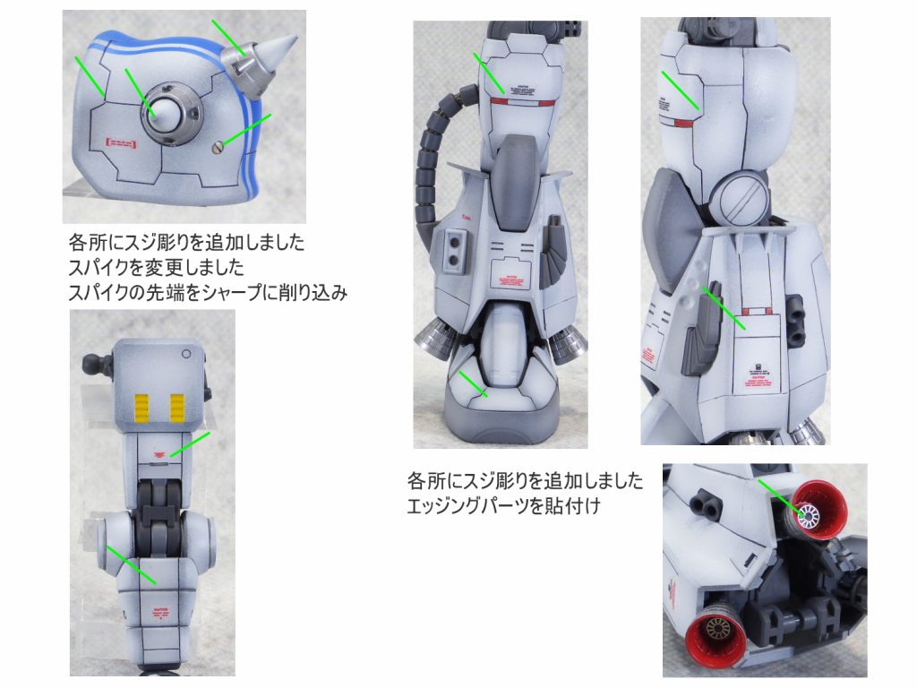 各所にスジボリにて情報量を追加して塗分け 太ももをパテにて幅…