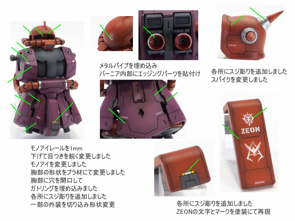 適所にスジ彫りの追加とプラ板チップを埋め込みました。 グラデ…