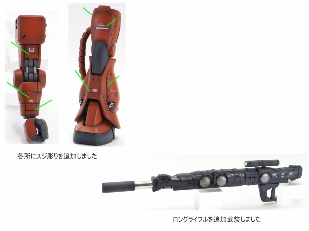 本体の各所のプロポーションを変更しました。 全体的にスジ彫り…