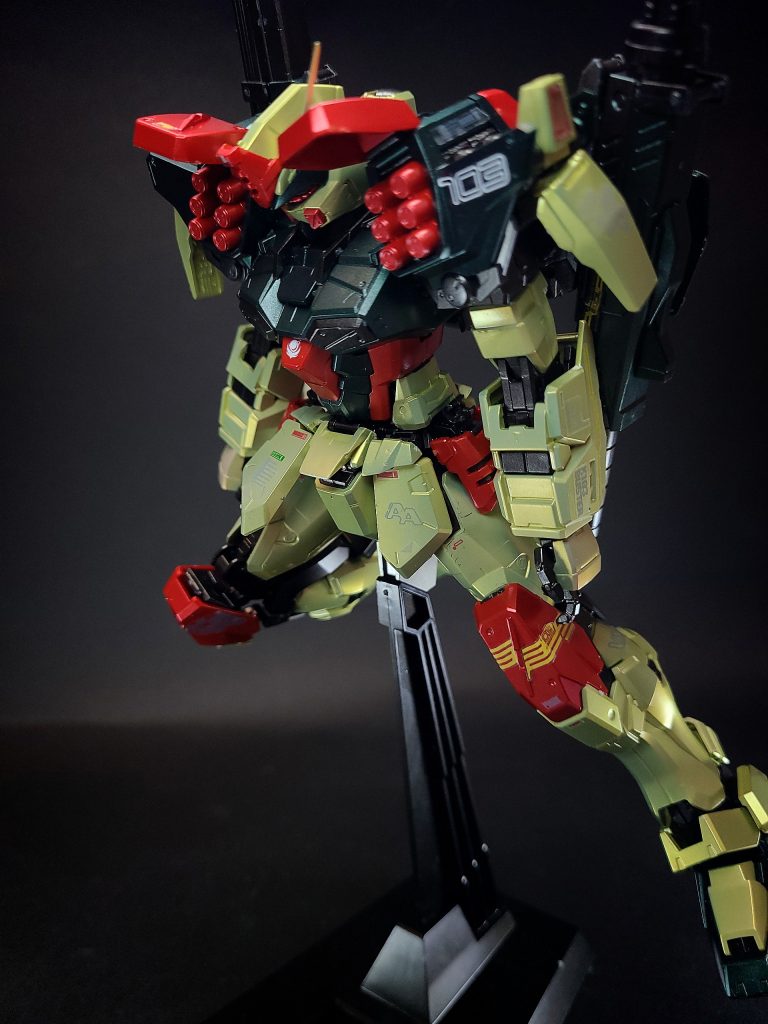 左腰アームに接続される大型ビームライフル。他の系列機に比べ大口径、高出力を誇り、当時の戦艦の主砲をも上回る火力を持つ。対装甲散弾砲350mmガンランチャーを前に、94mm高エネルギー収束火線ライフルを後に連結した形態。一度に無数の弾を撃ち出し、複数の敵に打撃を与える、対艦・対MS(MA)用のショットガンのようなもの。連結モード時の制約として砲身への負担が大きいため、連続射撃は不可能となっている。