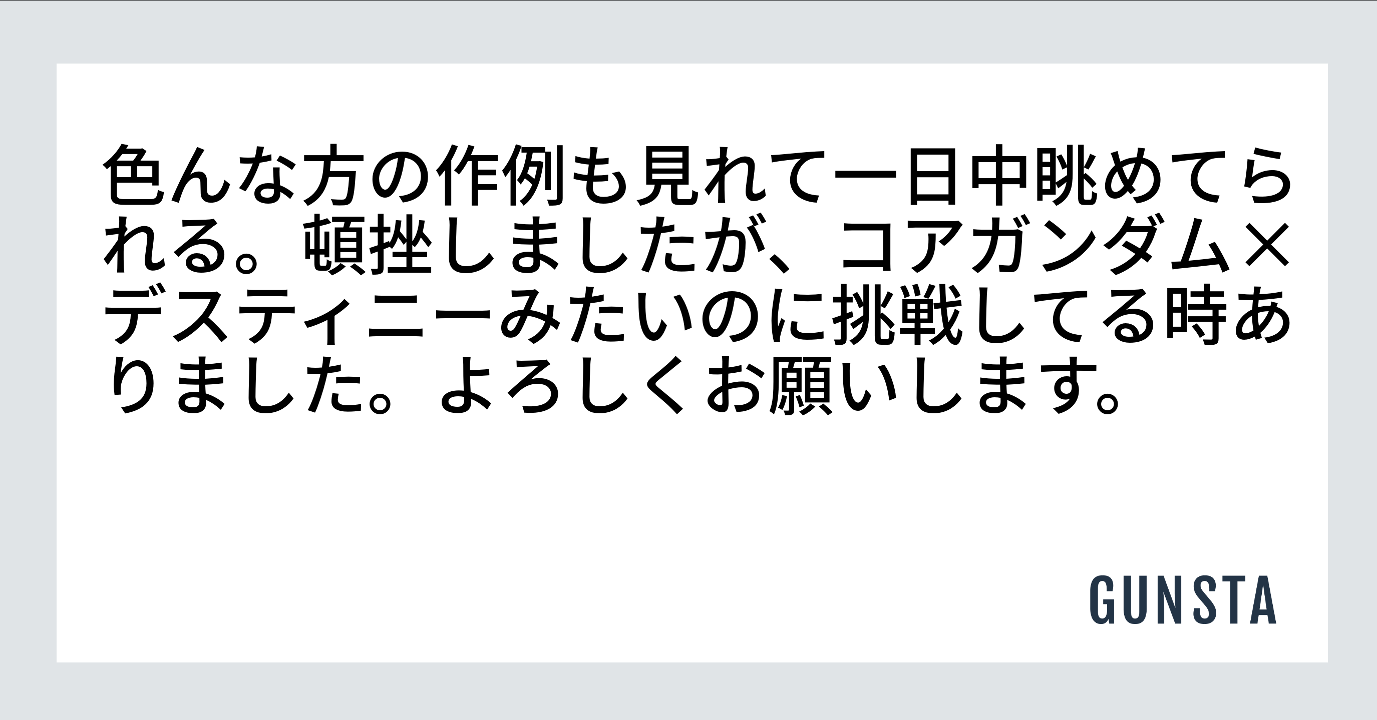 cell8088 2025.04/21更新 こんないいサイトあったのね 40 0 いいねしたモデラー(0) 0 作品を共有 色んな方の作例も見れて一日中眺めてられる。 頓挫しましたが、コアガンダム×デスティニーみたいのに挑戦してる時ありました。 よろしくお願いします。 つぶやき コメント コメントをして応援しよう コメントにはログインが必要です cell8088 模活初心者どす。