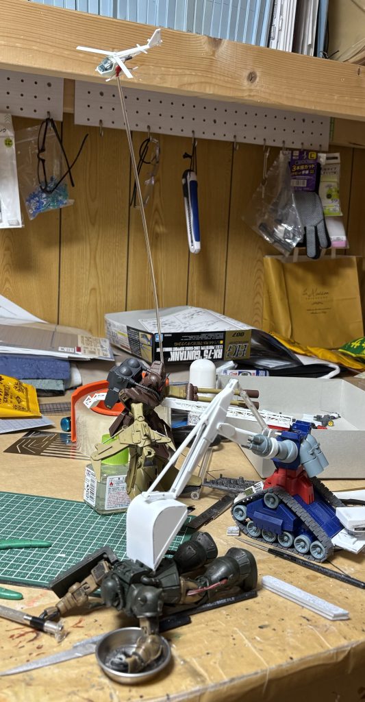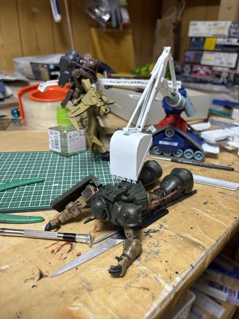 本日、ショベルアームの形を整えてて、痛感しました(zaku-kao4)