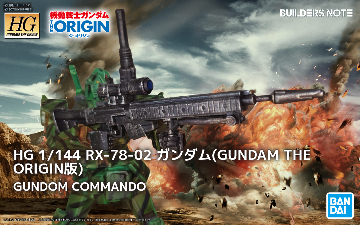 ガンダムコマンドーはオリジン版ガンダムです 可動が異次元の良キットです ライフルはジオン軍の試作型ビームライフルです 駿河屋で、何年か前に販売されていた袋入りのオプションパーツ武器セットから使いました ライフルを実銃のように見せたかったので、お褒め頂き光栄です 笑