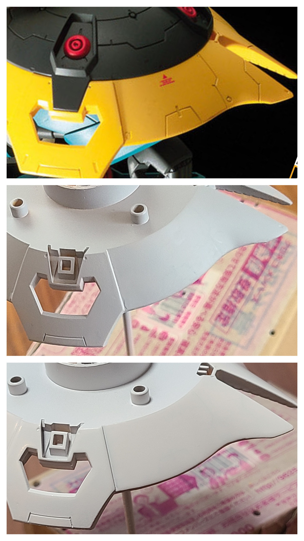 しろ 2025.09/25更新 72 23 いいねしたモデラー(23) 10 作品を共有 RE1/100 ヤクト・ドーガのシールドのスジ彫りモールドを減らしました。 上:キット 中:1回目ヤスリ~サフ 下:2回目ヤスリ~サフ (;´д`)もったいない。。。 HGグレードのサザビーに持たせるための犠牲です!涙 つぶやき コメント コメントをして応援しよう コメントにはログインが必要です さーしースー 2週間前 1/100のシールドをHGに換装! 何やらカッコいい予感しかしない🌟 しろ 1週間前 さーしースーさま 武器や防具、夢も大きいほうが良いと世間では言いまして。。。 (;´д`)ほんまかいな! サザビーのシールドはスタイリッシュすぎなので、総帥らしくダサ要素を盛り込みたいと思います!笑 meg-ocero 2週間前 最近は男もムダ毛脱毛するみたいですからね〜☺️ サザビーもツルツルテカテカ、しろさんもツルツルテカテカ しろ 1週間前 meg-oceroさま ♪ツル・ツル・テカ・テカ おしろはハゲるかな~汗 (;´д`)愛菜ちゃんと福さんにあやまれ! 一年中換毛期の自分はオデコが広くなったので、そろそろ眉毛を上にずらそうかと。。。笑 meg-ocero 1週間前 愛菜ちゃん福さんごめんなさい😫 しろ 1週間前 いえいえ、公共の場で国民的女優さんをイジって、謝るのは自分のほうです。。。 これがほんとのマナー(愛菜)違反! なんつって!。。。汗 (;´д`)頭にアクシズ落とそうか? meg-ocero 1週間前 しろさんに座布団三枚! 十枚貯まったらアクシズ落としですね☺️ しろ 1週間前 ♪ノリ・ノリ・悪・ノリ アクシズ落とすかな~汗 (;´д`)核パルスエンジン点火したぞ!汗 ヨッチャKID 2週間前 また違うのやりだしたかと思ったらサザビーだった笑。 俺はまた心配しちまったぜ?? またベソかいて泣きながら新しいの作ってるんじゃねぇかと思ってよぉ。笑 しろ 2週間前 ヨッチャKIDさま やっとモーターのコイルがあったまってきたところなので、寄り道は最小限でガマンしてます!笑 フォロワーさまのアドバイスは聞かないとですね! (*`ω´*)聞いとんのかしろ〜! ( ̄- ̄)ゞ途中まで聞いてました〜笑 しろ 好きだが物は上手ならず。 つぶやきしろ。 しろさんがお薦めする作品 hguc FAガンダム サンダーボルト ボール サンダーボルトver. HG ガンヴァレル ザクⅡA型(教導機動大隊所属) ザクヘッド 11 機動戦士ガンダム サンダーボルト ラストシューティング ・・・・・・イオ・フレミング・・・ 貴様との因縁には・・・・… 13 百式改 窮地に立たされたクワトロ・バジーナ。 自身をふるい立たせるか… 12 セイラマスオさん MS パワードジェスタ うまく作るための How to じゃありません 11 連邦 ジオング 機動戦士ガンダム サンダーボルト 上層部に報告しろ…目標の奪取に成功。 連邦も…サイコミュを手… しろさんのページ