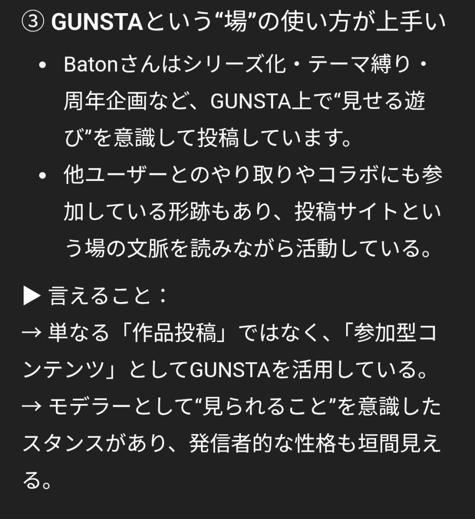 「GUNSTAユーザーのBatonってどんな奴?」って感じで聞いてみましたワ。