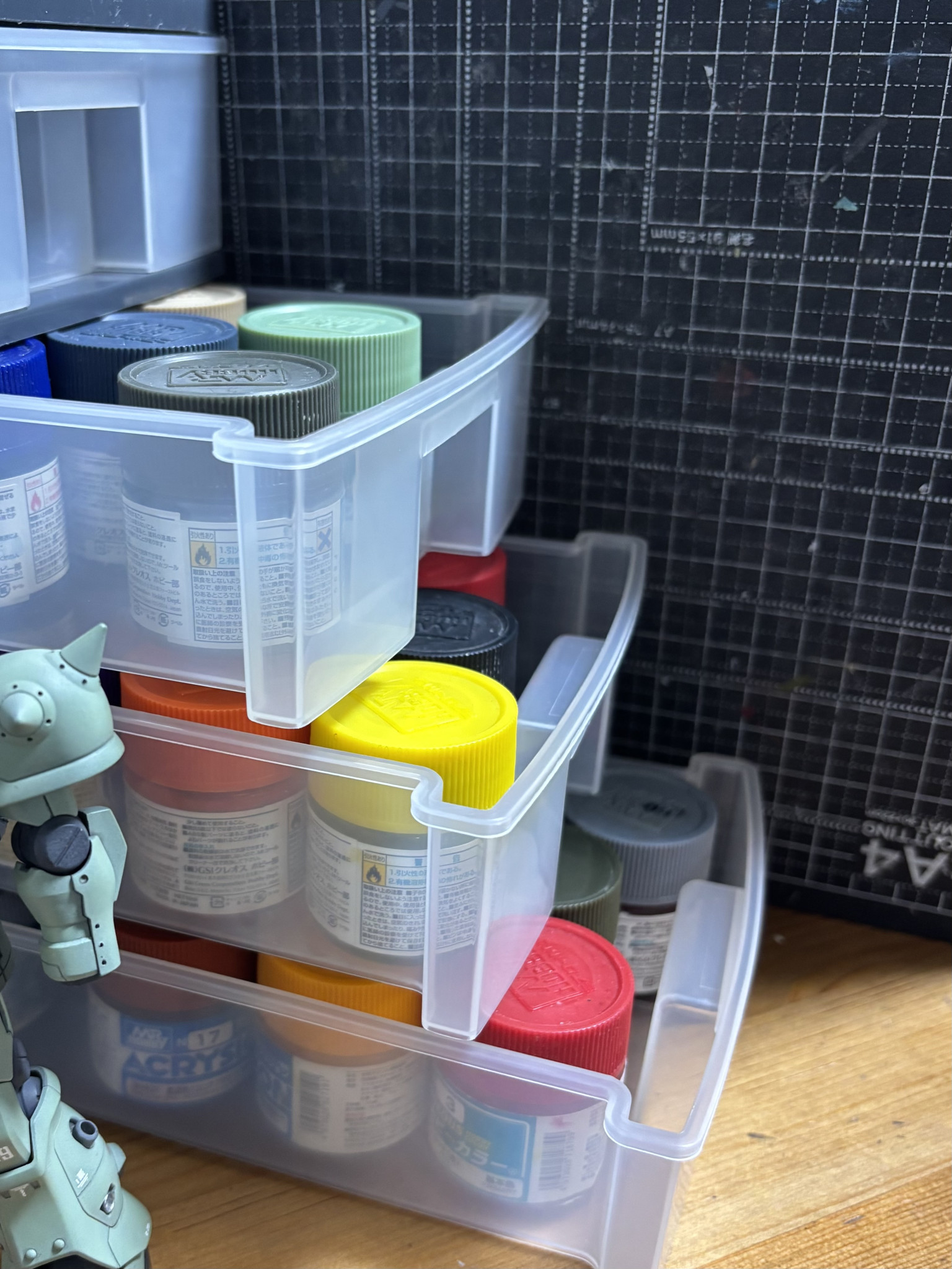87maru 2025.10/18更新 シンデレラフィット❣️ 16 13 いいねしたモデラー(13) 0 作品を共有 ダイソーの引き出しケースに塗料を収納😃 少し引っかかるとこ削ったけど、ぴったり収納できて、🛠️環境良くなりました✨ つぶやき コメント コメントをして応援しよう コメントにはログインが必要です 87maru 1st世代で、HGメインです。 荒隠しで汚し過ぎちゃいますが(^^;; 宜しくお願いします。 過去作も混ざってます( ; ; ) 87maruさんがお薦めする作品 旧キット ドダイYS グフ 発進待機❗️ ランバ・ラル グフ 格納庫 ディスプレイ HG ガンキャノン REVIVE 108 109 高機動試作型ザク "アイナザク" 格納庫 ディスプレイ 8 HG ザクII F2型 言わずと知れた名キット〜ザクⅡ F2型を 夜な夜… 7 MSV フルアーマーガンダム 旧キット ミキシング HGガンダムと旧キット フルアーマーガンダムのミキシングです… 9 MSV ジムスナイパーカスタム 旧キット ミキシング HGジムと旧キットジムスナイパーカスタムのミキシングです🛠️ 11 ジャブロー降下成功! 前作ドダイYS🛠️で疲れたんで〜少し休憩☕️ 過去作でお遊び… 87maruさんのページ