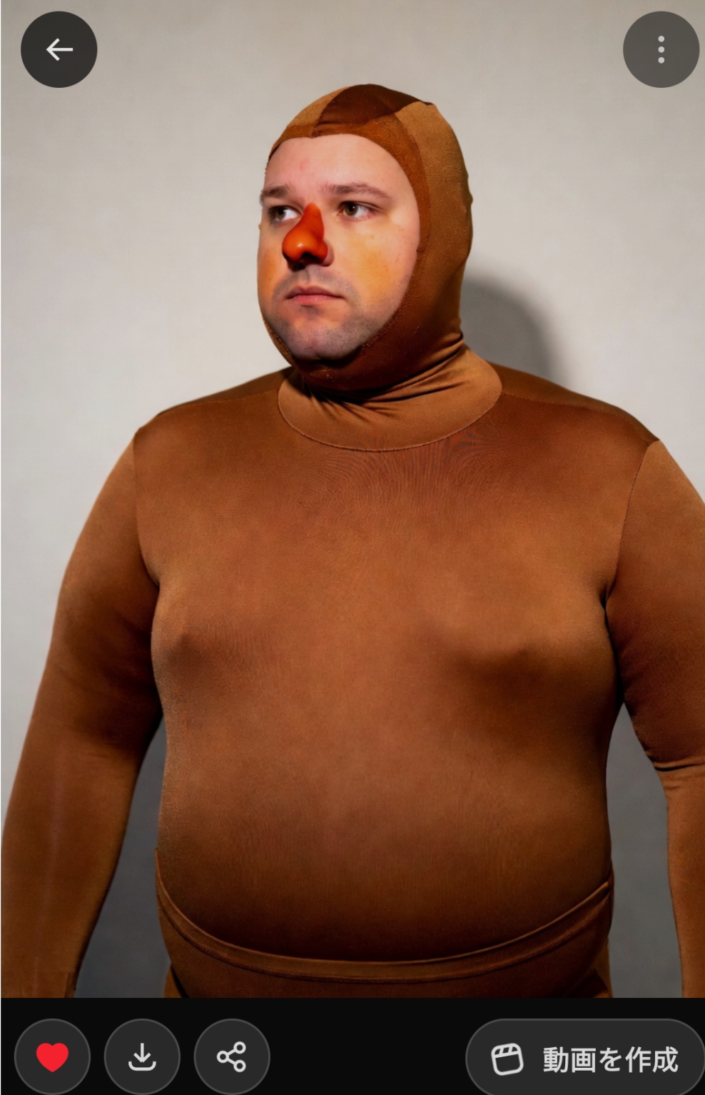 自分で生成しておいてあれですが、ズラッとトナカイのコスプレのおじさんが出てきた時には吹き出しました🤣(笑)