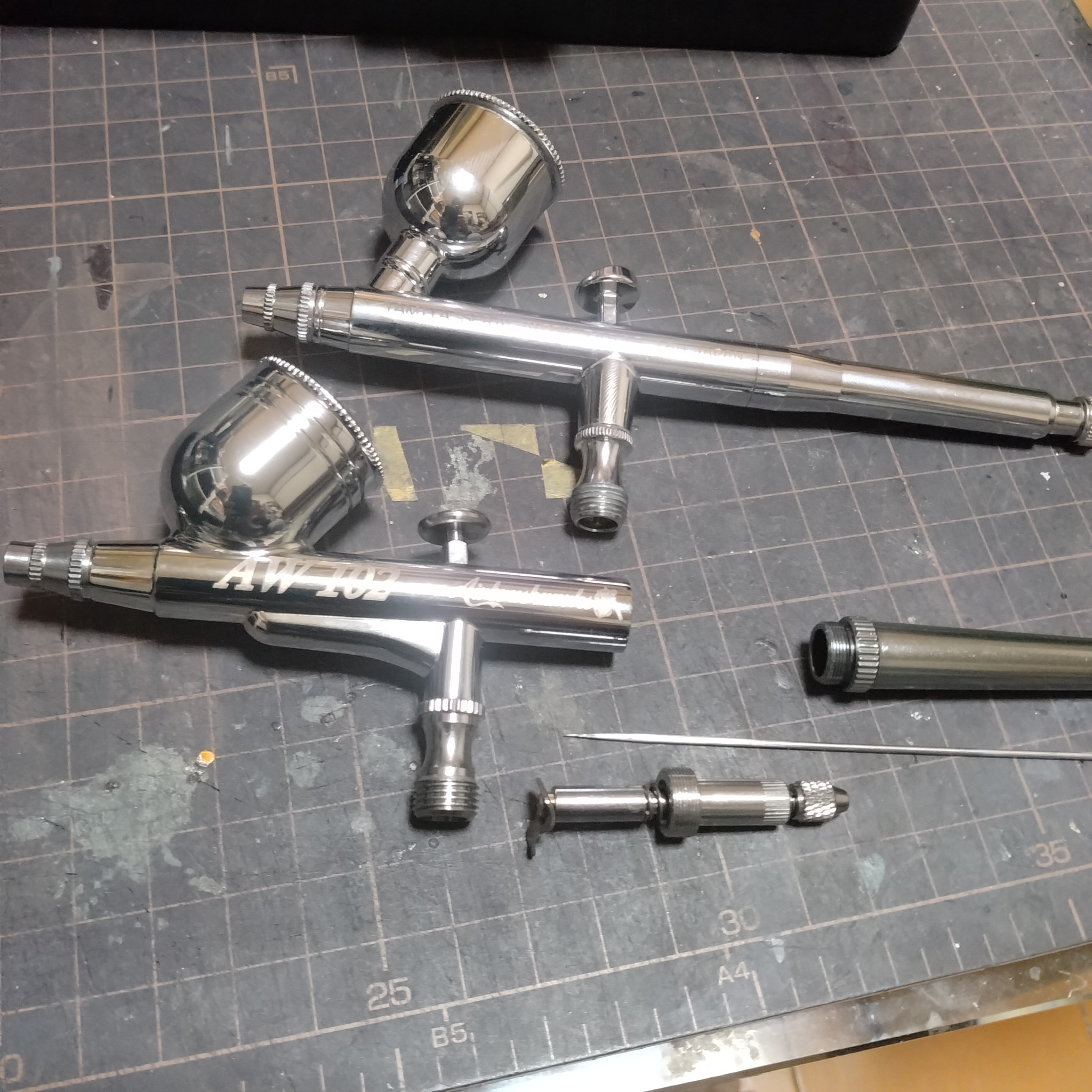ライトニング2 2025.11/18更新 😄😄ハンドピース!復活! 0 11 いいねしたモデラー(11) 4 作品を共有 今日届いた取り敢えず代替え器として購入したちょい安価な0.2のハンドピースですが!一度もデビューしないかも知れません!😄もしかしたらと、ずっと使ってきたタミヤスーパーファインにニードルサイズが合うのでは?と、試しに着けて変えて見たら!なんと!ピッタリでした!😄😄やりました!😄スーパーファイン復活です!取り敢えず今日来たエアブラシワークスのハンドピースはニードルが簡単に手に入るみたいなので!その内に何本か入手しておこうと思います!😀なんかエアブラシワークスのハンドピースが可哀想になってます!😅 つぶやき コメント コメントをして応援しよう コメントにはログインが必要です まお大佐 13時間前 コメント失礼します。 復活おめでとうございます。 やはり道具は使い慣れたのが良いですよね。 ライトニング2 11時間前 ハイ!これよりも高価なハンドピースは 今まで使った事もあるのですが!私にはこのスーパーファインが一番シックリ来るんです!😄この1ヶ月余りこのハンドピースの調子のせいもモチベーション低下の要因でした!😄必ずですが懐の具合が悪い時に限ってこんな事があるんですよ!😄😄コメント有難う御座います!😀 cinnamon-1 16時間前 お気にのハンドピース復活😁良かったですね👍 ライトニング2 11時間前 ハイ!😄ニードルがピタッとハマった時!凄く嬉しかったです!😄長さもジャストフィットで!今、懐がさみしくて新調しようにもハンドピースだけに予算を割くことが出来なくて😅ホントに嬉しいです!😄 ライトニング2 GUNSTAに多いファースト勢です!😄幼少期よりプラモデル作りが好きでリアルロボットの前世紀、ガンダム、ボトムズ、エルガイム、ファイブスター、ザブングル、ダンバイン、ダグラム、マクロス、その他、ロボ以外でもキャプテンハーロックのアルカディア号や宇宙戦艦ヤマトなどなど他にも色々と有りますが!特にガンプラは途中、間は空きましたが、ずっと作り続けてます!😄プラモデルなら例え美プラだろうと塗装表現を特訓する為に作ったりもします!😄😄お時間がありましたら見てやって下さいませ!😀ちなみにXもちょい触ってますが、面倒くさくて余り真面目にやってないので気にしないで良いです!😄😄私はGUNSTAだけで良いと思ってますので! ライトニング2さんがお薦めする作品 MGリック・ディアス MGゲルググVer2.0 RGジオング MG ガンダム試作2号機 GP02A サイサリス 2 デジラマ背景HGトーリスリッター デジラマ背景でHGトーリスリッターです! 2 デジラマ背景HGペイルライダーDII デジラマ背景HGペイルライダーDIIです! 1 デジラマ背景MGジムスナイパーII デジラマ背景でMGジムスナイパーIIです!オリジナルカラーに… 2 デジラマ背景HGフェネクス デジラマ背景でHGフェネクスです!😀 ライトニング2さんのページ