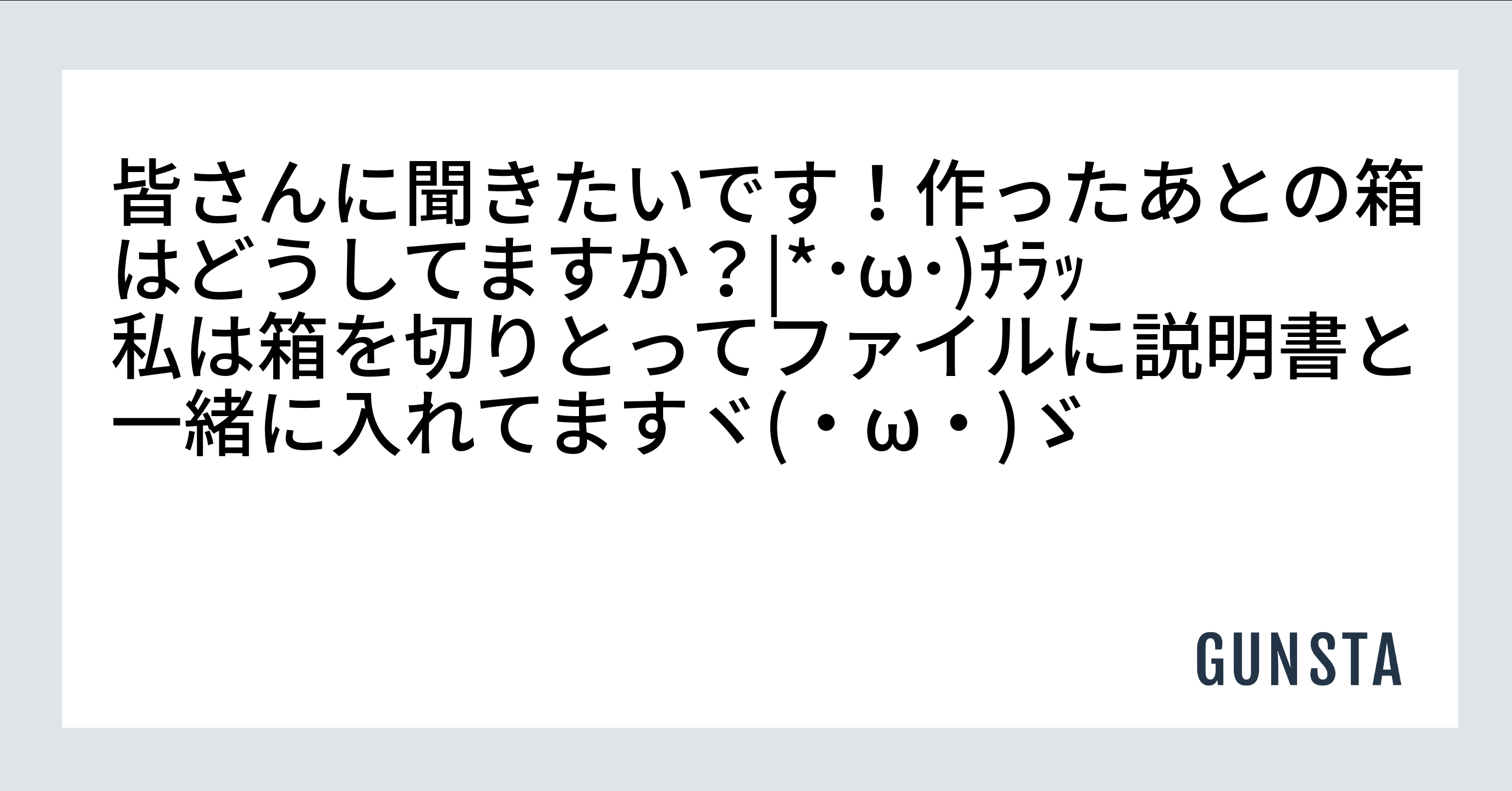 kokemaru 2025.11/30更新 箱ってどうしてますか? 56 4 いいねしたモデラー(4) 6 作品を共有 皆さんに聞きたいです!作ったあとの箱はどうしてますか?|*・ω・)チラッ 私は箱を切りとってファイルに説明書と一緒に入れてますヾ(・ω・)ゞ つぶやき コメント コメントをして応援しよう コメントにはログインが必要です バレーボールおじさん 1か月前 アタシは捨ててましたけど、みなさんの影響で最近は保存してます。 一つだけ、適当なサイズの【透明プラ板】【黒の画用紙】【透明樹脂製のネジとナット(5mmぐらい)】で額のような物を作って挟んでます(zaku-kao8) kokemaru 1か月前 コメントありがとうございます! やはり額縁にする方多いんですかね、めっちゃ素敵だと思います゚+.゚(´▽`人)゚+.゚ 私も額縁作って飾ってみたいと思います!( ´艸`) 教えて頂きありがとうございます!((*_ _) フリーダム-ウイング 1か月前 はじめまして 私はトレーディングカードサイズに切り出してファイル保管しています 百均でそろいますしね kokemaru 1か月前 コメントありがとうございます! 切り取ってカードサイズにしてるんですね(`・ω・´) 確かに百均でカードサイズがいっぱい入るファイル売ってますもんね。たくさん保管できるのいいですね!( *¯ ꒳¯*) 教えて頂きありがとうございました!(´▽`) Roid 1か月前 初めましてです。 自分はお気に入りのパッケージだと切り取って額縁に入れてます。 カッコいいイラストだと中々捨てれないですよねー。 kokemaru 1か月前 コメントありがとうございます! 額縁に入れるのめっちゃいいですねd(˙꒳˙* ) 今まで何体か作ってきましたがパッケージみんな素敵で…(∩˘ω˘∩ ) 場所が少ないのでお気に入りの一枚決めて額縁に飾って見たいと思います!教えていただきありがとうございますm(_ _)m kokemaru ファーストのかっこよさに惹かれこの世界に入ってきました😊 まだにわかですが、色々学びたいです🥕🥕🥕 kokemaruさんがお薦めする作品 ガンプラくん ジオラマ畑🥕 ガンプラくん、夏っぽいジオラマ!射的ッ! にんじん釣り!? ニューガンダムとサザビー モチモチにんじんもち ジャスティス 5 かっこいいでしょ?シャアザクくん かっこかわいい(≧∇≦) YouTubeでガンプラくんを見て… 5 ザクプラくん…待ってました(≧∇≦) 発売をずっと待ってました!!!発売当日に買って詰んでました(… 4 ガンダムキャリバーン 作ってて楽しかったです(´˘`*) 前に作ったんですがupし… 4 HG Zガンダム せっかくもらったので作ってみました(*´艸`) kokemaruさんのページ