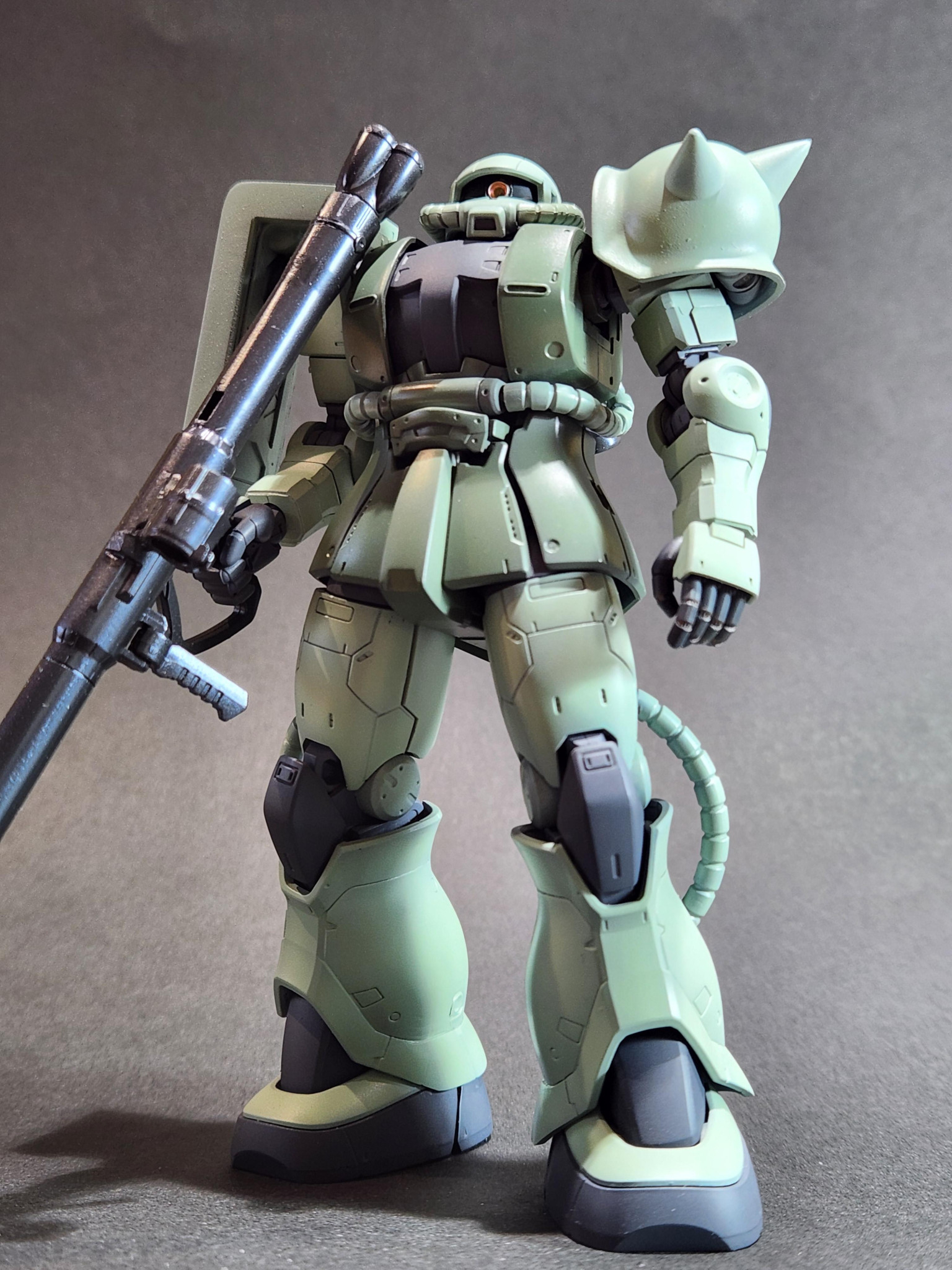 ありがとうございます。やはりザク!ザクですよ。いつも塗装前のサフ萌えで、そのまま止まってるんですが、塗ってみると量産型カラーもやはり格好良いですよね♪