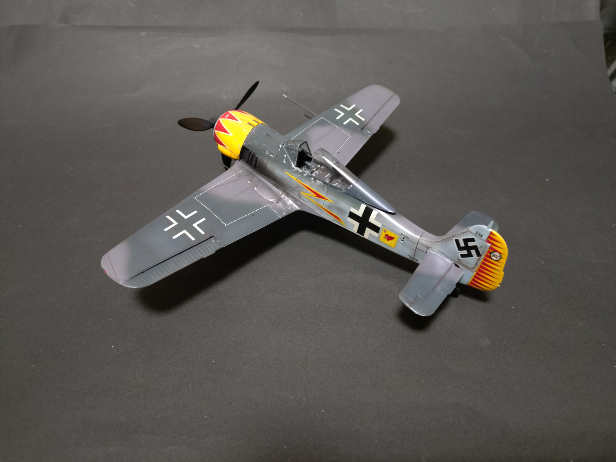 のぴお 2025.12/31更新 フォッケウルフfw190A-5 ヘルマン・グラーフ大佐機 24 20 いいねしたモデラー(20) 2 作品を共有 今回のザクのカラーリングで参考にしたヘルマン・グラーフ大佐機です。 過去に作った物です。 本当は胴体に描かれてるパーソナルマークのイナズマと機首に描かれてる薔薇模様も再現予定でしたが、時間に余裕が無くこれをマスキングする時間も気力も消失…………😭 ただ、ザクのシールドに描くスペースは空けてるのでいずれ塗装しようかと思っております🙇 ちなみに、右腕後ろのパーツは組み上げる時にパリっと割れてしまい泣く泣く接着…………😭 あまり見えないのでリペアもせず(笑) つぶやき コメント コメントをして応援しよう コメントにはログインが必要です さーしースー 4時間前 いまから描いて、もう一回上げる٩( ᐛ )و 笑←無茶振り のぴお 2時間前 年末年始は仕事なので…………😭 そして、今日から雪予報…………(笑) のぴお 幼少の頃にコミックボンボンで観たプラモ狂四郎とMS戦記にハマり、その後にスケールモデルにハマりどっぷりとモデラー生活してましたが、思春期になって悪いことを覚え、しばらく遠ざかってましたが、なんとか復活❕w 釣り、音楽と趣味が増えつつもプラモ作りは継続、現在に至る。 ガンプラ、戦闘機、戦車、車のモデルが大好きです👍️ ガンプラは主に宇宙世紀物が大好きです😃✌️ 大改造等はせずに、ゆるーく作ってます🙇⤵️ Instagramもやってます🙇⤵️ のぴおさんがお薦めする作品 《MS-06R2改 グラーフ大佐機》 《MS-06S イワモト中尉機》 《MS-06F2 ザクF2 マルセイユ大尉機》MGザクF2 17 《MS-06R2改 グラーフ大佐機》 紅白ガンプラ合戦‼️ 紅組で参加です👍 もしも、ドイツ空軍の… 17 《MS-06S イワモト中尉機》 MGザク2S型完成‼️ もしも、大日本帝國海軍の岩本徹三中尉… 9 ガンダムとの遭遇‼️ 戦場でガンダムと出会ってしまったOZ兵士の恐怖と苦悩……… … 14 《XXXG-01S2 アルトロンガンダム》 『貴様らは正しいのか、貴様らは正しいのかと聞いている‼️』 … のぴおさんのページ