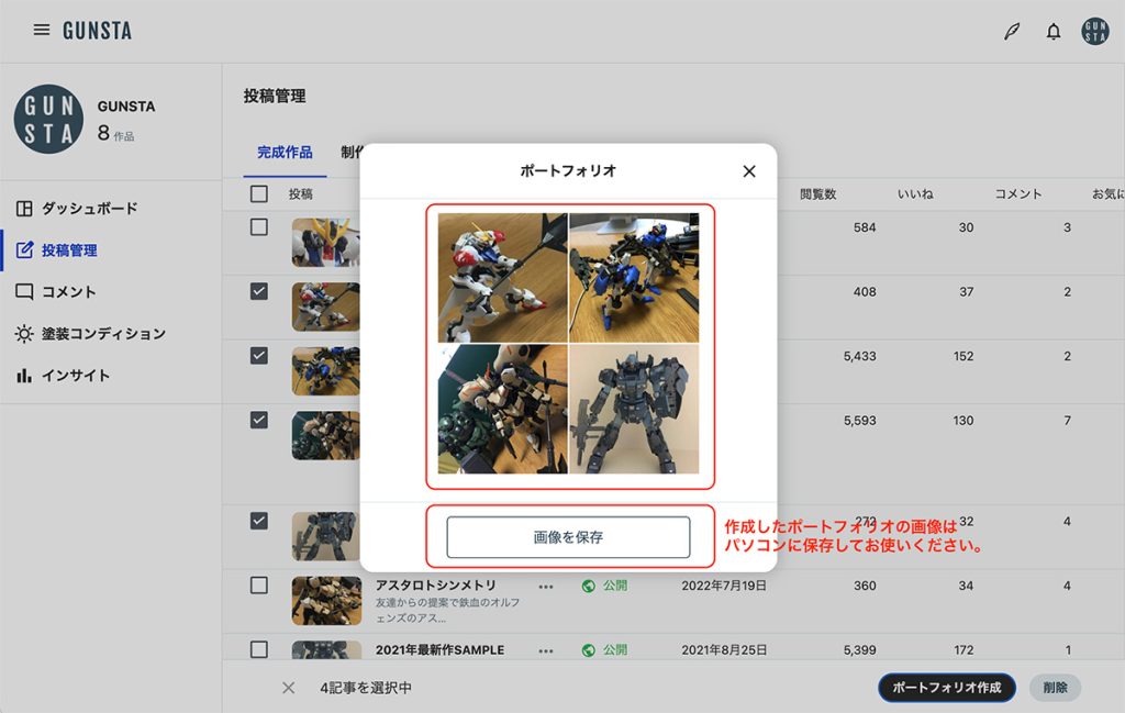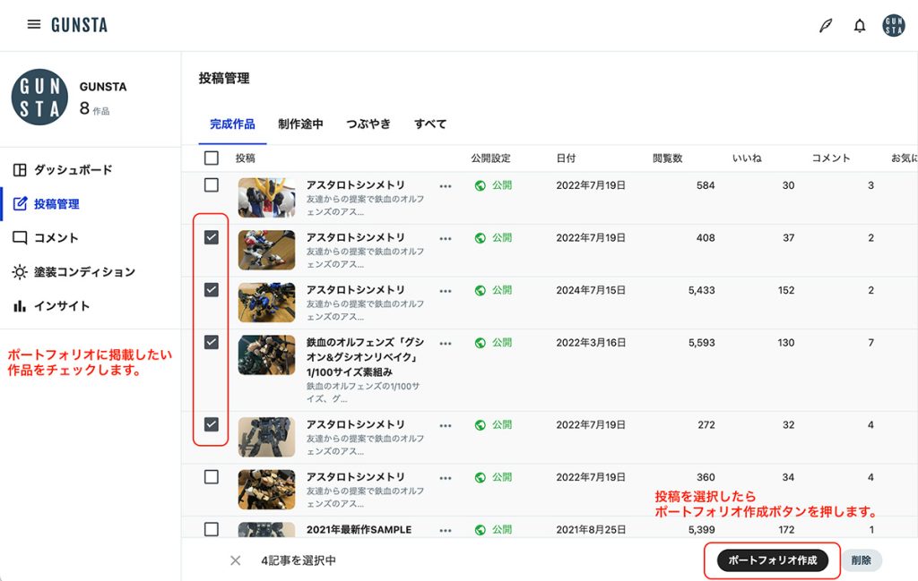 このたび、GUNSTA PC版サイトにてポートフォリオ機能を再実装しました。