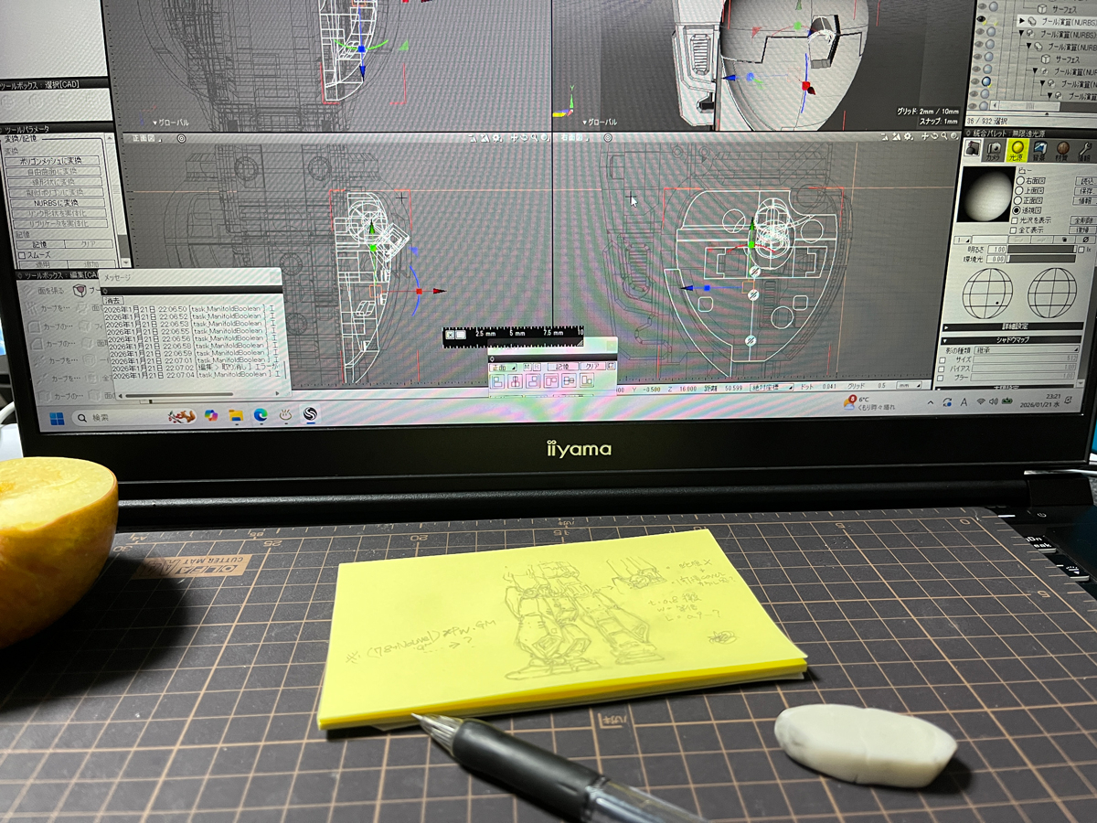 tom_s0079 2026.01/22更新 ●荒む(すさむ)お爺と荒ぶる神の気配 24 7 いいねしたモデラー(7) 2 作品を共有 ・忍耐の長時間寸法調整検討。・寒さ・手が冷える→マウス誤作動・気分転換:次作案落書きと他所にチョッカイの現実逃避・眠気…・不摂生(食べず作業→思考停止→チョコ+リンゴ)・寝落ち・絶対神の静かな圧… 半覚醒。そして現在。…今週中に試作ぐらいはしたい。(ーー;)…無理か?…以後短期、少々静かに励みます。 つぶやき コメント コメントをして応援しよう コメントにはログインが必要です kisaki 11時間前 だが、共に生きることはできる(zaku-kao5) tom_s0079 7時間前 おぉ…。感涙止まらず…(ノД`)・゜・。 心強く奮闘の所存ですぅ!(`・ω・´)ゞ tom_s0079 センチネルな世界線に永住を決意した「無銘」の野良お爺です。 あの工業機械感溢れる姿を、RGキット的にポーズ変更にも破綻 しない形で可動立体化を志す我流デジタル派。随時修正も継続。 昔、可動など玩具思想で「作品」には不要と幾度も言われ…。 それでも「それっぽい彫刻」でなく「機械」は実際に動くもの! との思い止められない孤独な「元・図面屋」でもあります(笑)。 老いに加え突然の体調不良にアンダーグラウンドのボッチ系を 改心しGUNSTA参加。この良き場の末席に置いて頂けないかと。 現在は体調一段落。新作と同時に過去作の仕上げも始めたい…。 だが老いは隠せず、何卒優しい目でお願いしたい…(^^;) 16 MSM-07/ズゴック:センチネル風(?) ●MSM-07/ズゴック:センチネル風(?)「工業系MS感セ… 15 RGM-79/パワードジム:Ver,ka風 1/144 旧RG:RX-78-2ガンダムからの改造です。 … 12 1/144 HG ORIGIN MS-06Sザク2改造:MS… ●製作概要プロジェクト第3弾(?※文末)ついにジオンに手を伸… 7 旧RG:Ver.Kaガンダム大地に立つ…積載車。 旧RG:Ver.Kaガンダムの投稿内で前振りした物。少しシン… tom_s0079さんのページ