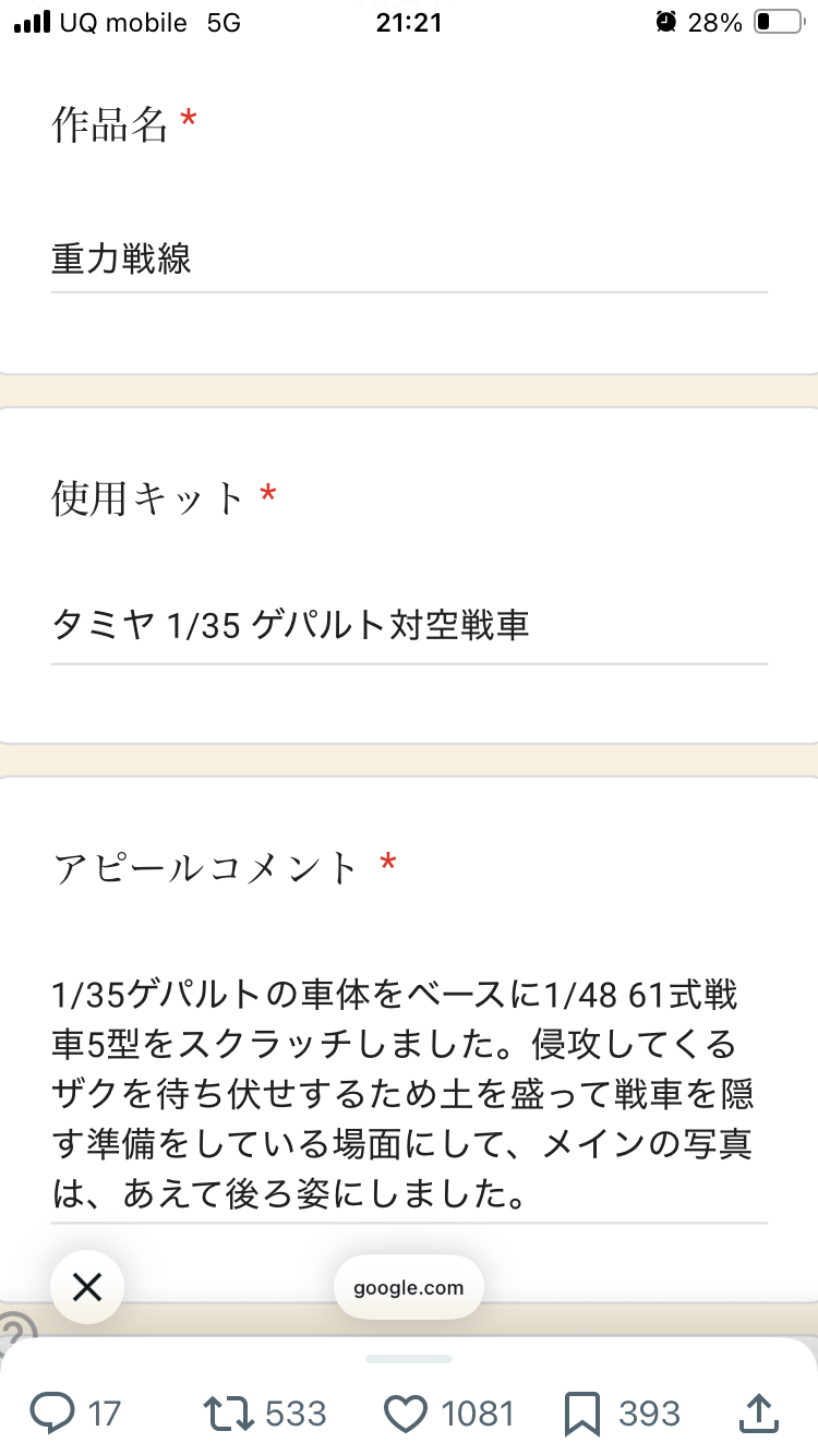 コンテストに参加するために、どんなジオラマにしようか悩んでた…