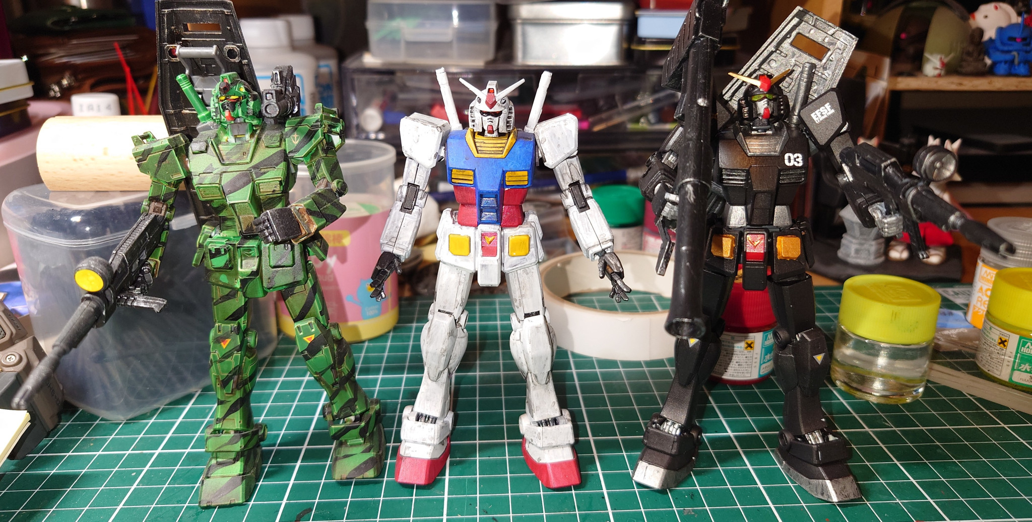 左からガンダムコマンドー、ガンダム(配布キット)、ヘヴィメタルガンダム
