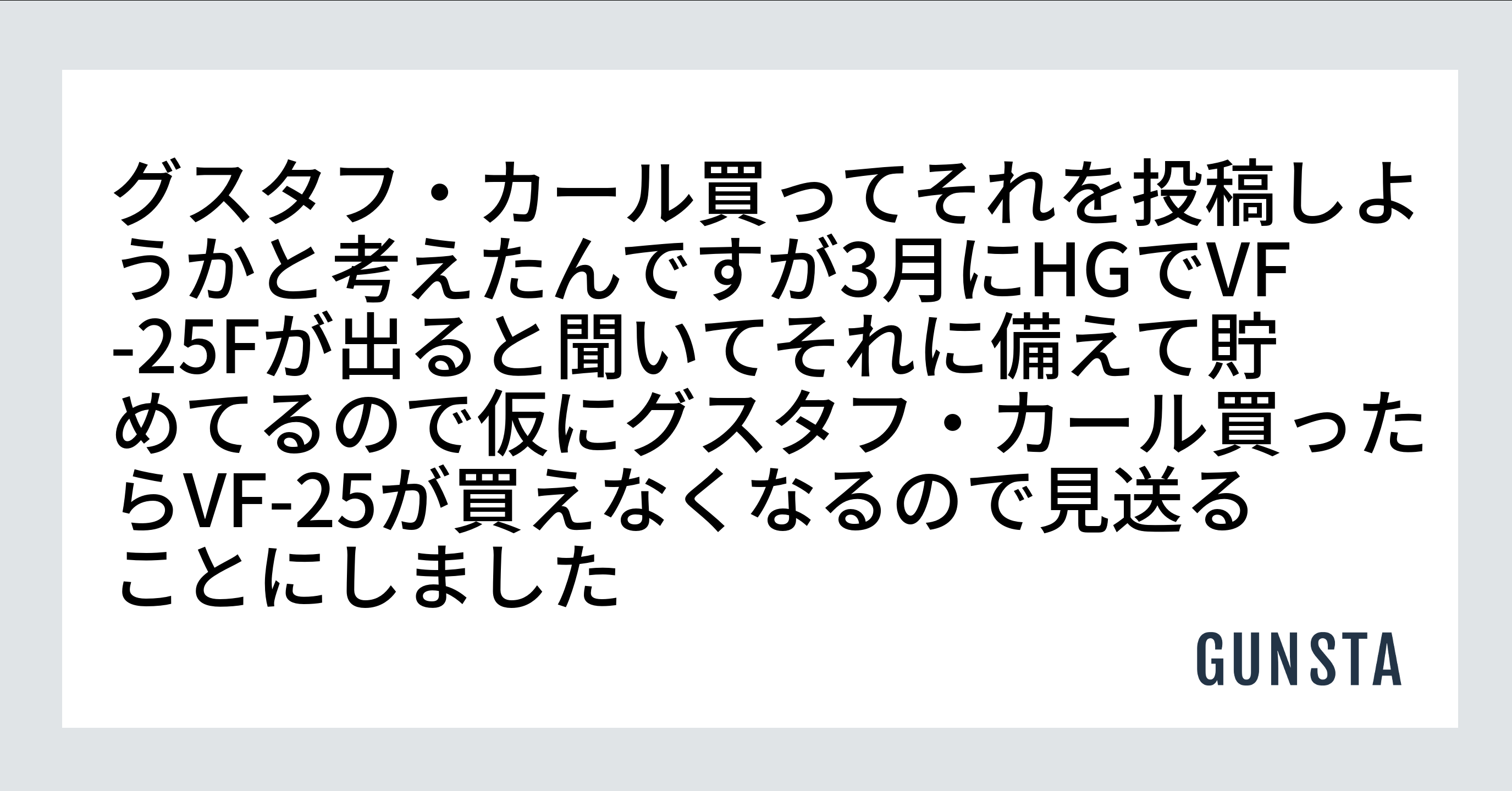 地球連邦兵 2026.02/11更新 グスタフ・カール評判いいですね 16 8 いいねしたモデラー(8) 0 作品を共有 グスタフ・カール買ってそれを投稿しようかと考えたんですが3月にHGでVF-25Fが出ると聞いてそれに備えて貯めてるので仮にグスタフ・カール買ったらVF-25が買えなくなるので見送ることにしました それと今年中に自衛隊にすっ飛ばされるので投稿はお休みします。 つぶやき コメント コメントをして応援しよう コメントにはログインが必要です 地球連邦兵 バトオペやエスコン、艦これなどしてるモデラーと言っていいのか分からない者です! いつガンプラを投稿するか不定期ですのでご容赦を(過去に作ったものを投稿するかもしれない) 地球連邦兵さんがお薦めする作品 投降 ジムスパルタン HGジムスパルタン 近接格闘特化 ジムスパルタン 9 ジムスパルタン(墨入れつや消し) ヤフーフリマでほぼ定価でジムスパルタンが転がってたのでポチり… 9 陸戦型ジム(再投稿) 重力戦線をみててふと「あ、素ジムが持つシールド構えさせたいな… 8 陸戦型ジム ヤフオクで落札した組み立て済みの陸戦型ジムを少し手を加えまし… 6 ズゴックE(部分塗装+渕穴再現) ジムコマの大規模改装の合間に作った蟹江です。完成した時は「な… 地球連邦兵さんのページ