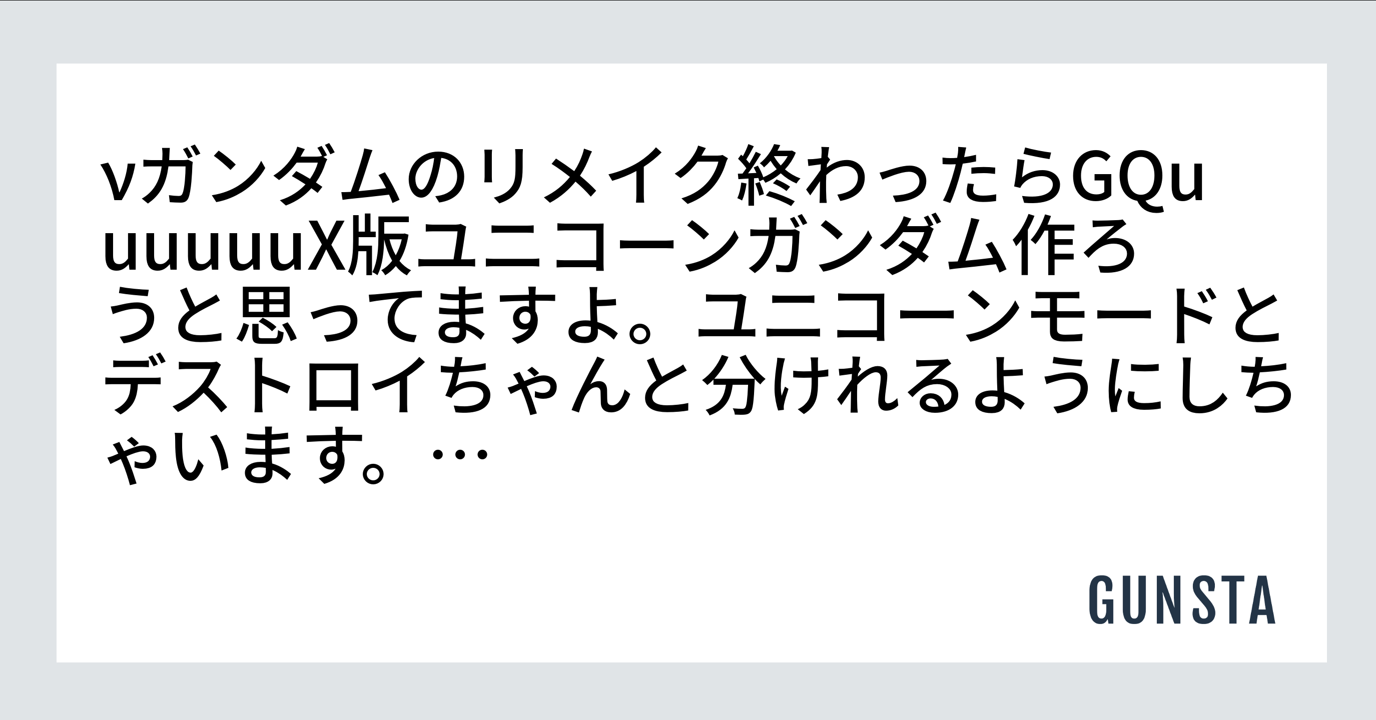 コンチワワ 2026.02/21更新 ユニコーン! 0 18 いいねしたモデラー(18) 0 作品を共有 νガンダムのリメイク終わったらGQuuuuuuX版ユニコーンガンダム作ろうと思ってますよ。 ユニコーンモードとデストロイちゃんと分けれるようにしちゃいます。 つぶやき コメント コメントをして応援しよう コメントにはログインが必要です コンチワワ ジークアクスが好きです。 現役高校生。 塗装初めて3ヶ月程の初心者ですが頑張ってます。 コンチワワさんがお薦めする作品 GQuuuuuuX エンディミオンユニット覚醒時 ハイディテ… 9 GQuuuuuuX版 νガンダム 旧バージョン こんにちは。今回はミキシング! GQ版νガンダムです!(本編… 12 GQuuuuuuX エンディミオンユニット覚醒時 ハイディテ… 初投稿です!こんにちは。初めて投稿させていただきました、GQ… コンチワワさんのページ