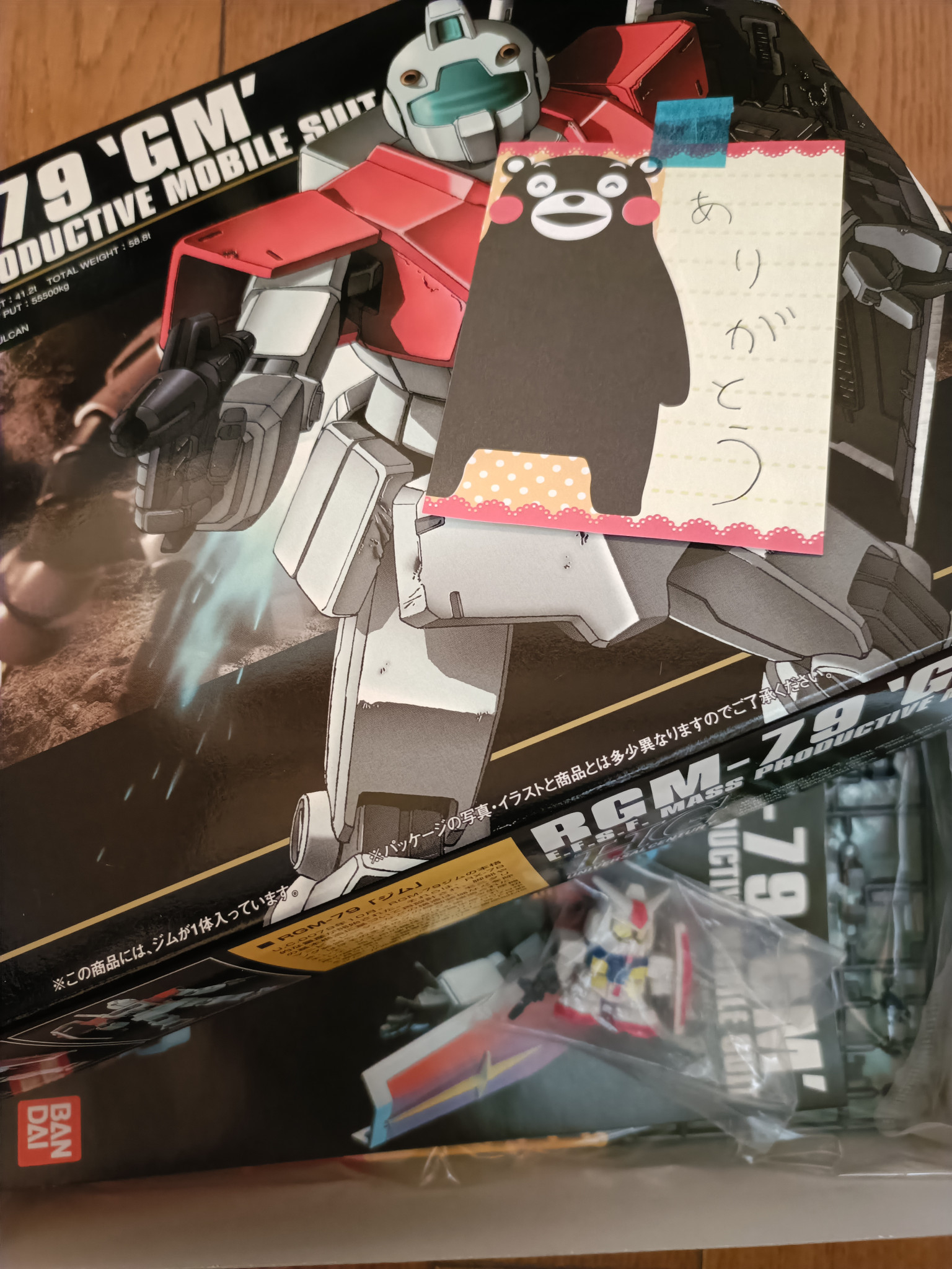 箱の表にメッセージと中にはささやかながらもおまけのミニチュアガンダムまでも入っておりまして、夜勤明けの風呂上がりのぽかぽかした雰囲気をさらに幸福という名の暖かい空気に包まれていくなか、幸せとはこういうものだと改めて実感いたしました。箱の横を見るまでは…。