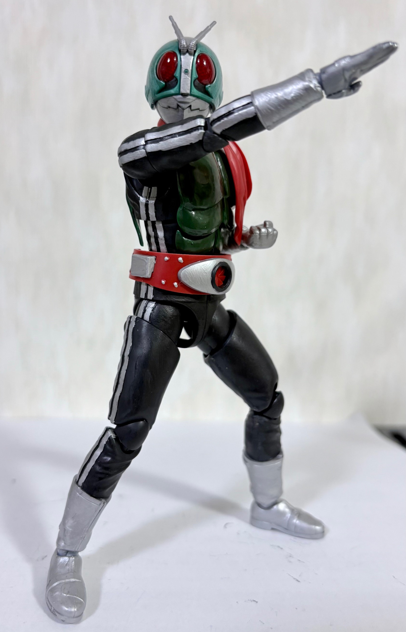 G-spark 2026.03/22更新 最近買ったモノと買う予定のモノ。 24 15 いいねしたモデラー(15) 0 作品を共有 久しぶりのつぶやき。 昨日新発売のフィギュアライズスタンダードの「仮面ライダー新1号」が届いたので、早速組み立て&塗装してみた。 「うん、真骨彫いらないわ(gundam-kao5)」ってぐらい出来が良い。これで3920円でスタンド付きならコスパ最高でしょ♪ 早く新2号や専用のサイクロン号でないかな~。 ・・・おっと、本筋のガンプラの方は、原点回帰のために「影荒烈駆主」か「皇騎士ガンダム」を買って改造してみようかなぁ(gundam-kao2) 買ったよ コメント コメントをして応援しよう コメントにはログインが必要です G-spark 幼稚園の頃に親と一緒にファーストガンダムを見てガンダムにはまり、5歳の頃にガンプラデビューしたガノタです。ガンダム以外にもトランスフォーマー(G1とビーストウォーズメイン)や鉄人28号、あぶない刑事、ゴジラ、仮面ライダー、ウルトラマン、特攻野郎Aチームが好きな雑食系ヲタです。 今でもファーストとBB戦士を中心にガンプラを組み立てては改造してます‼皆さん、よろしくお願いします。 G-sparkさんがお薦めする作品 EGプロトタイプガンダムfeat.あぶない刑事 ROBOT魂リペイント 赤いガンダム ~あぶ刑事ガンダムVe… EG G-3ガンダム YUJI's CUSTOM EGガンダム セイラ・マス専用機 9 【リンクトラベラーズ】マチュとニャアンで遊んでみた(スーツ編… 久々の投稿。 今回は以前紹介したモノの続きで、スーツ姿のマチ… 17 【リンクトラベラーズ】マチュとニャアンで遊んでみた。 今回は息抜きとして、リンクトラベラーズのマチュとニャアンを紹… 7 【SDEX】軍警用νガンダム(Ver.G7) 本日二つ目の投稿はエクススタンダードのνガンダムをリペイント… 10 【モビリティジョイント改造】G4ガンダム 今回はモビリティジョイントのプロトタイプガンダムを改造した「… G-sparkさんのページ