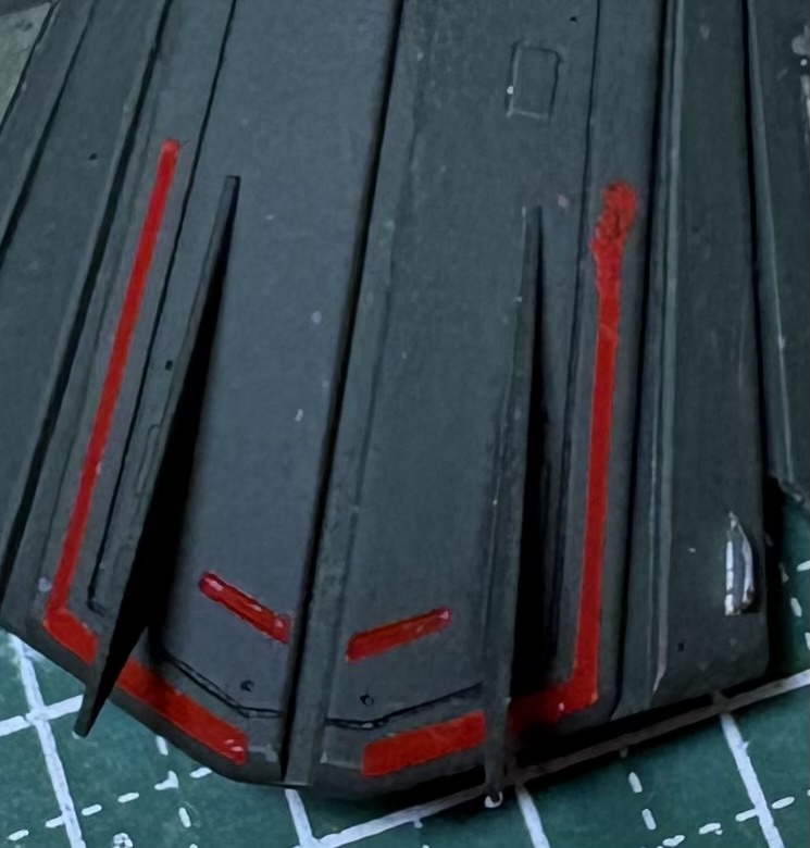 マスキングテープと塗料の境目に出来る盛り上がる部分は乾燥後に目の細かいペーパーで軽くなぞるようにちょっと擦って段差を少なくする👍
