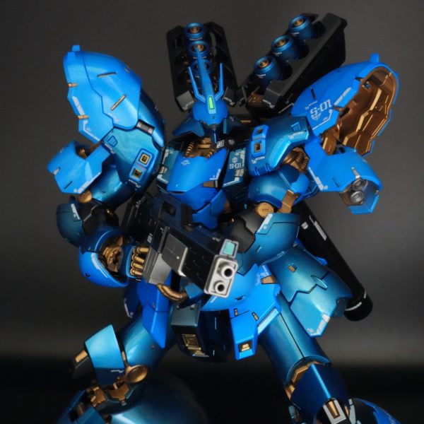 ダブルオークアンタをベースに主武装として〈GNソードⅡブラスター〉や腰部に設置した〈GNライフルビット〉四基、左脚部に〈GNカタール〉一基、そして太陽炉を有する肩部バインダー部に〈GNバスターソードⅢ〉を装備させている。