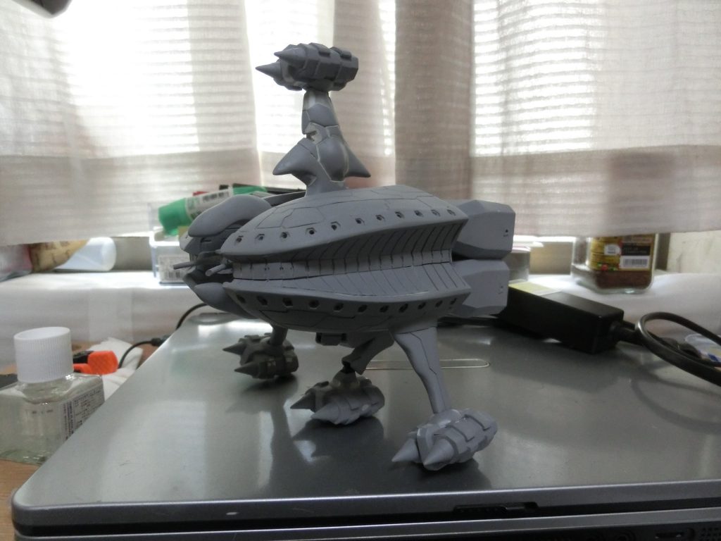 旧キット1/550のブラウ・ブロをたまたまブックオフで見つけ、気軽な気持ちでサンダーボルト版に改造しようと製作を進めてまいりました。サンダーボルトの16巻を繰り返し、じっくり観察すると、ファーストのブラウ・ブロとは別物であることが判明・・純正パーツを使用したのは結局、本体の一部だけになりました。8割近くはプラボード、プラバン、パテによるフルスクラッチです。今までの制作で一番時間をかけて(半年ぐらい)気合を入れて制作しました。
