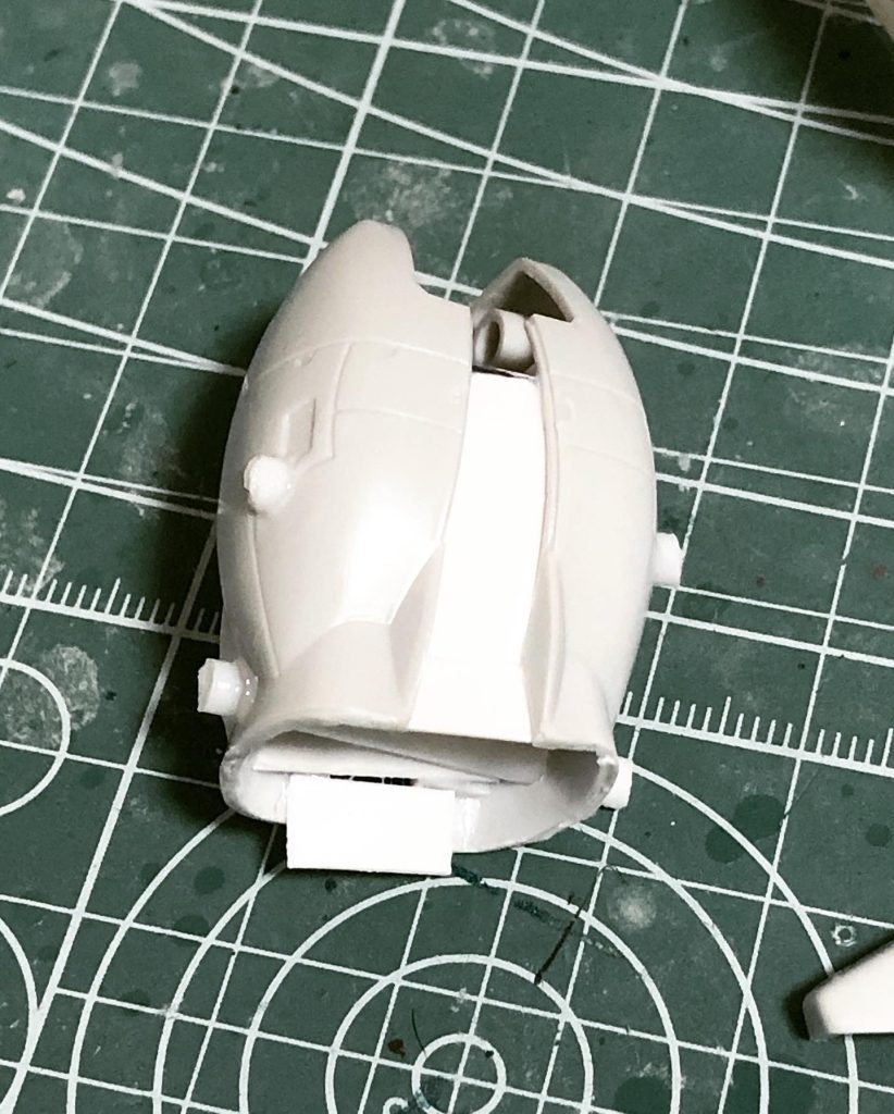 また、顔もこの時代特有の下ぶくれ感があるので、頬のパーツを内側に詰め、ヒサシに0.3ミリプラ板を貼ります