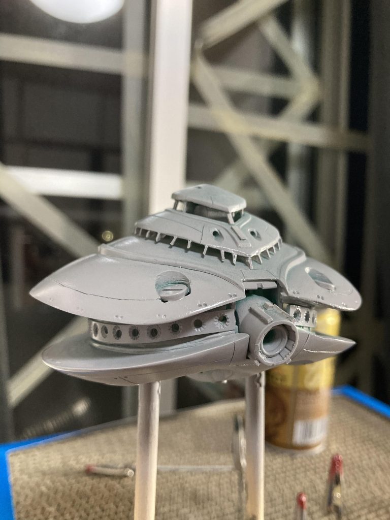 お椀上部の分離がナイスですね(しかも二枚とも別々!!)。電飾もいい感じです。側部砲門のディテールアップは根性でしょうか。