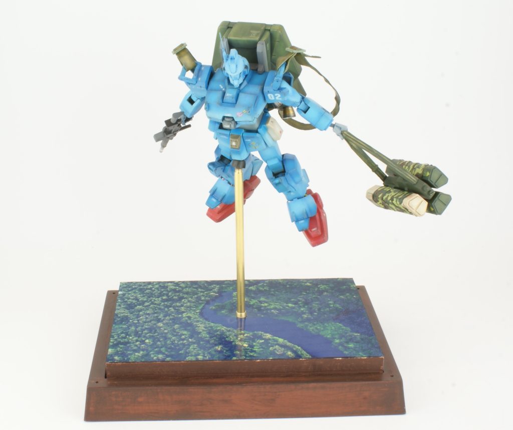 This build is the old 90’s kit made in a flight pose. It is Ez8 Unit 2 in PRU blue being air-dropped in Southeast Asia during the One Year War on a Reconnaissance mission.