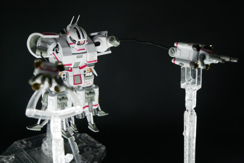 オールレンジ攻撃。ワイヤーさしているだけですが、手の方に受け穴をつくるのが大変でした。
