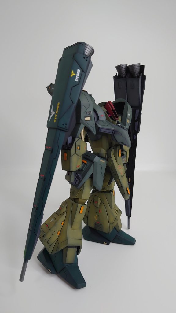 エポパテでスラスター追加、バインダーと足の裏がツルツルだったので、プラ板で情報量追加。バーニアはビルダーズパーツです。