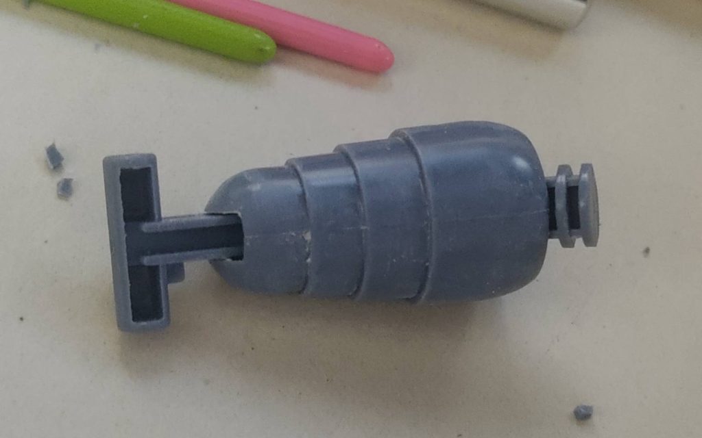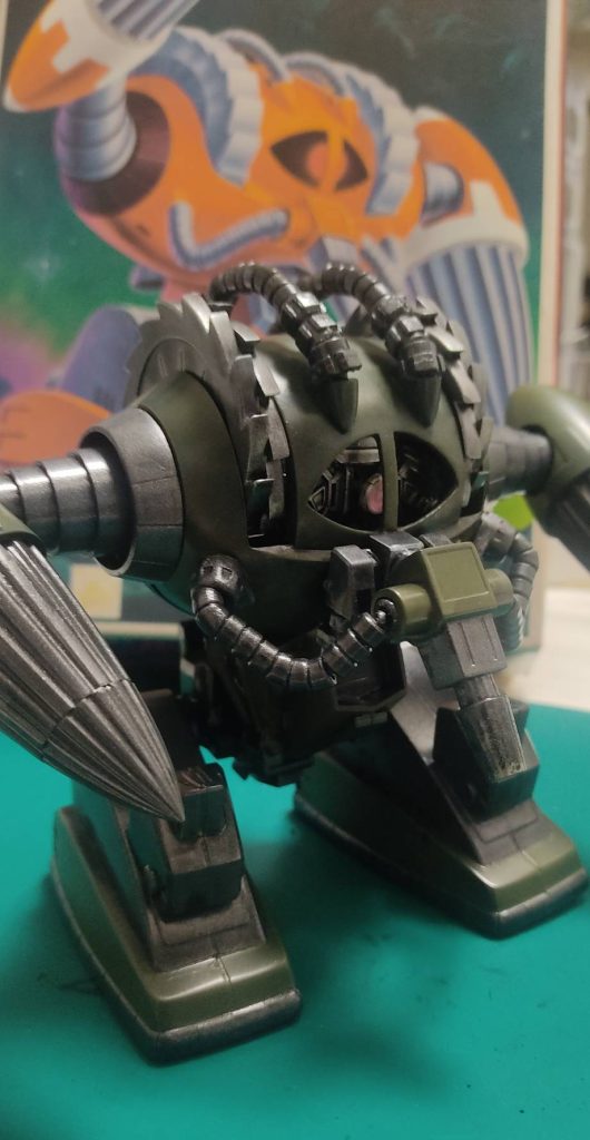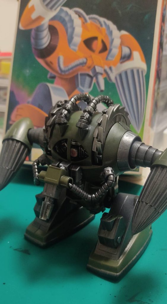 言葉少ないですが、めっさいじってますなぁ😊カットして、ずらすことで破砕機のようなディテールたまりません。旧キットに対する静かなる愛情を感じます。カラーリングも含めカッコいい!