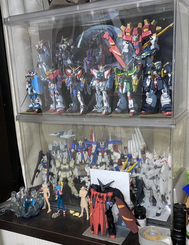 HG多め、自分で組んだ機体をコレクションとして並べるの好きで、主役機を組むことが多いです。