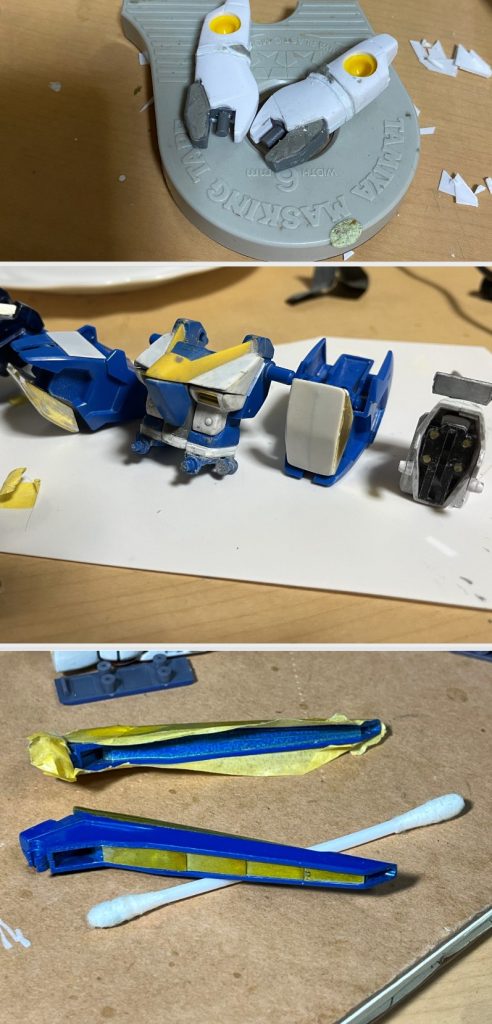 ミノフスキードライブ裏をプラ板を用いてディテール追加しています。わかりずらいですが、プラ板で合わせ目消し隠しも兼ねて、他の箇所にも簡易的にディテール追加を行いました。