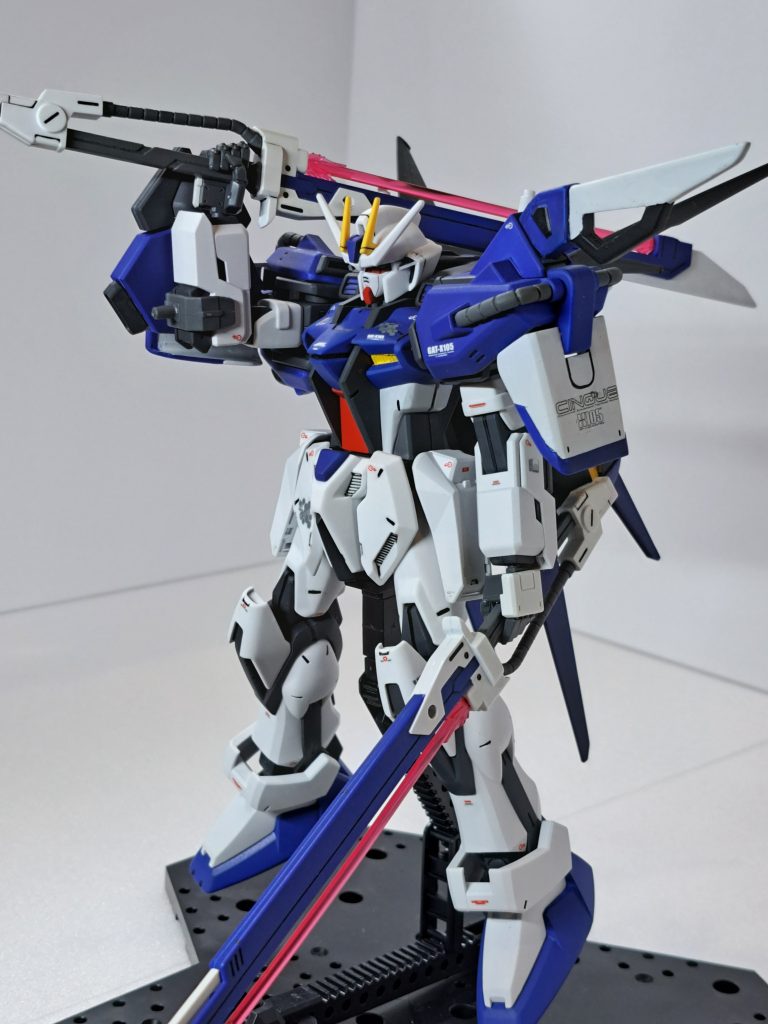 カラーを青色主体に塗装し、エールストライカーを背負わせ、ソードストライカーの肩アーマーを両肩に取り付けています。