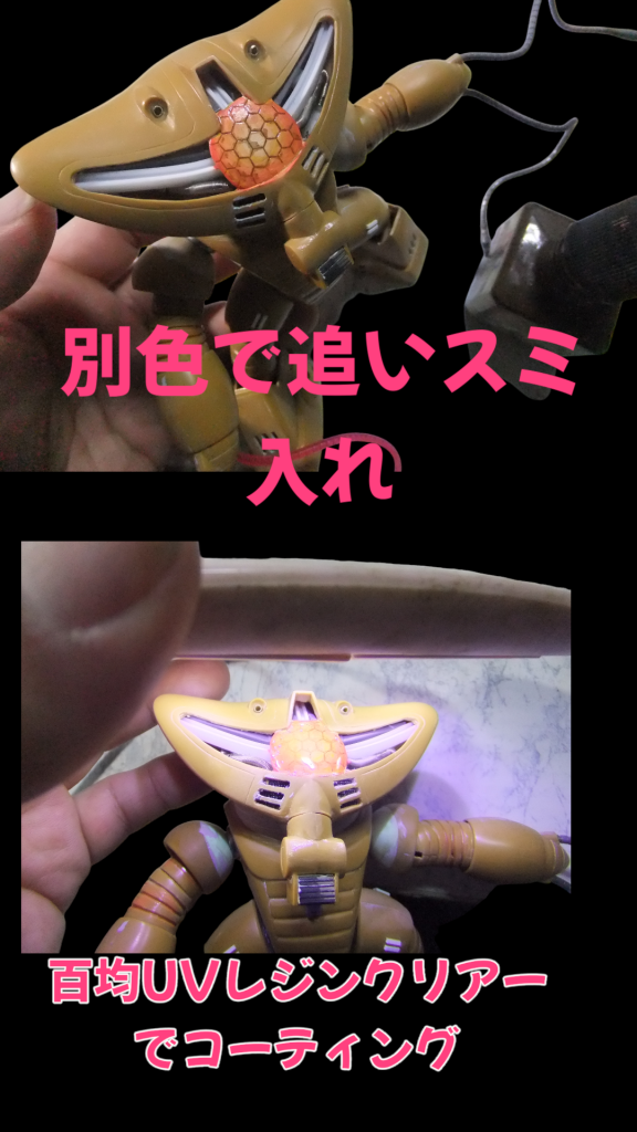 先ほど完成版の方でもコメントさせていただきましたが、モノアイ周りをここまで加工された根気と技術力、敬服します。
