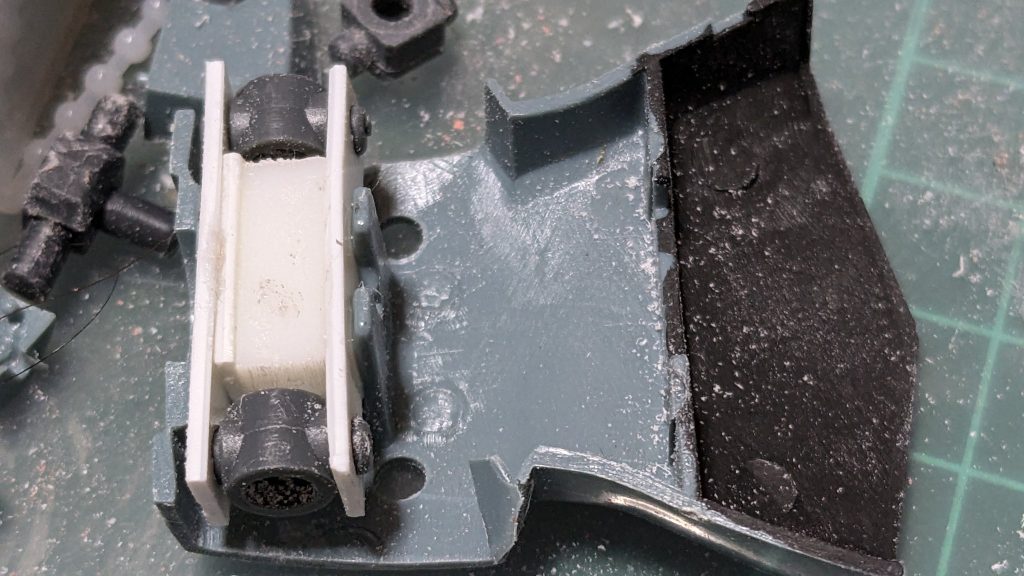背面から見た時のこの荒々しい魔改造されたボリューム感こそ06Rらしいと言うか子供の頃に衝撃を受けたイメージです。最近のキットの妙に工業製品的なスラッとまとまった迫力をこれっぽっちも感じさせないアレンジでは到底及びもしないカッコ良さだと個人的に思います。