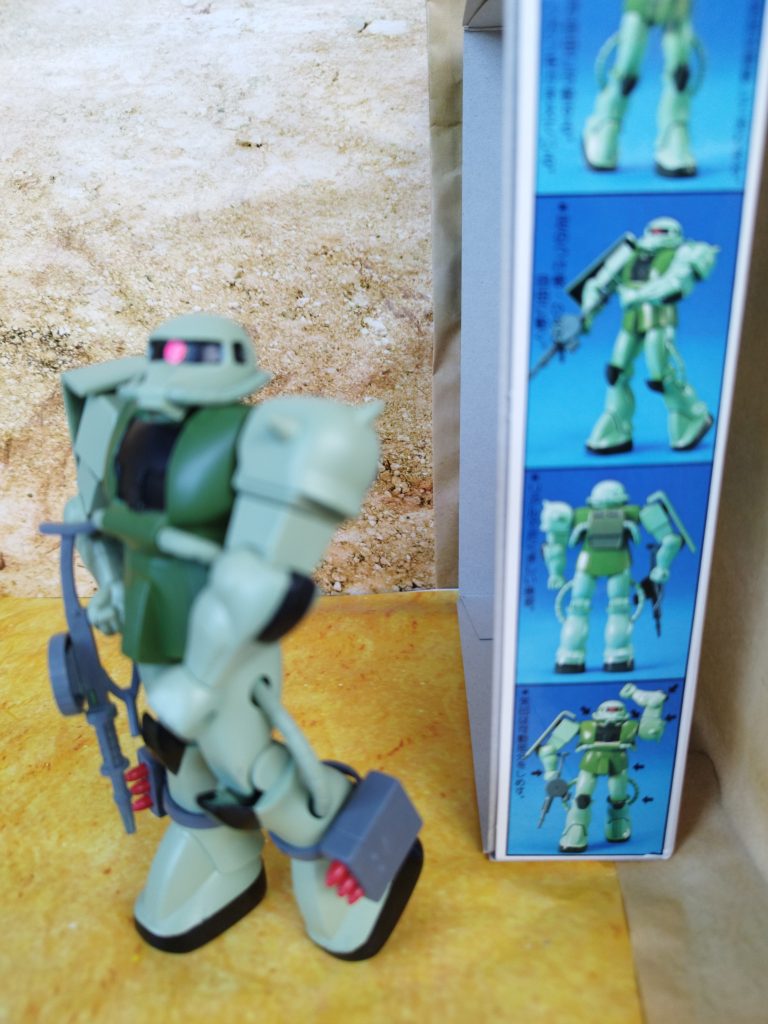 旧キットチャレンジ第3弾は量産型ザクです。素組みです。一切手を加えてません。スタイルがヤバいです。さすが40数年前のキット……今と並べると笑う…ですが味わい深い…塗装はモノアイはガイアの蛍光、その他はクレオスのラッカーライトグリーン、MSグリーンと黒は水性の黒で塗装しました。ミサイルポッドもガンベで購入して付けました(接着必須なので外せない)。HGUCの完成度の高さが際立ちます…