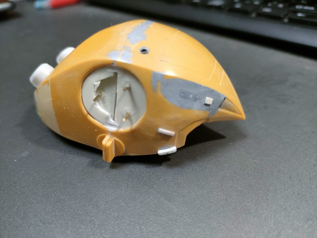 「背中のブチブチの赤いこぶ」も捨てがたいですが、よりリアルに、自作スラスターパーツに換装。
