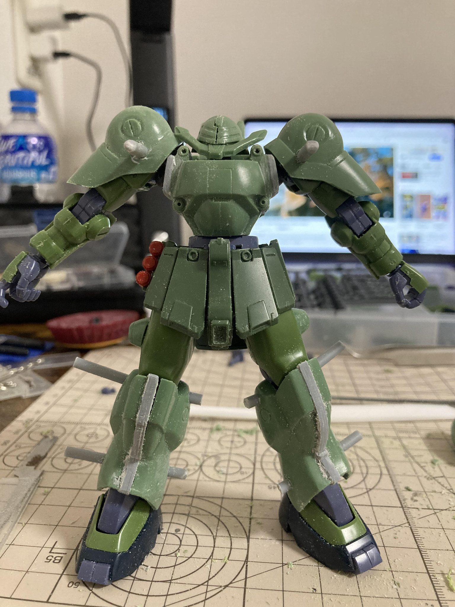 全塗装は小学生以来で、元々苦手なのと、久しぶりのガンプラなので、細部がめっちゃ雑いですが、ご容赦ください。久しぶりすぎるので、結局半年くらいかけてチマチマやってました。