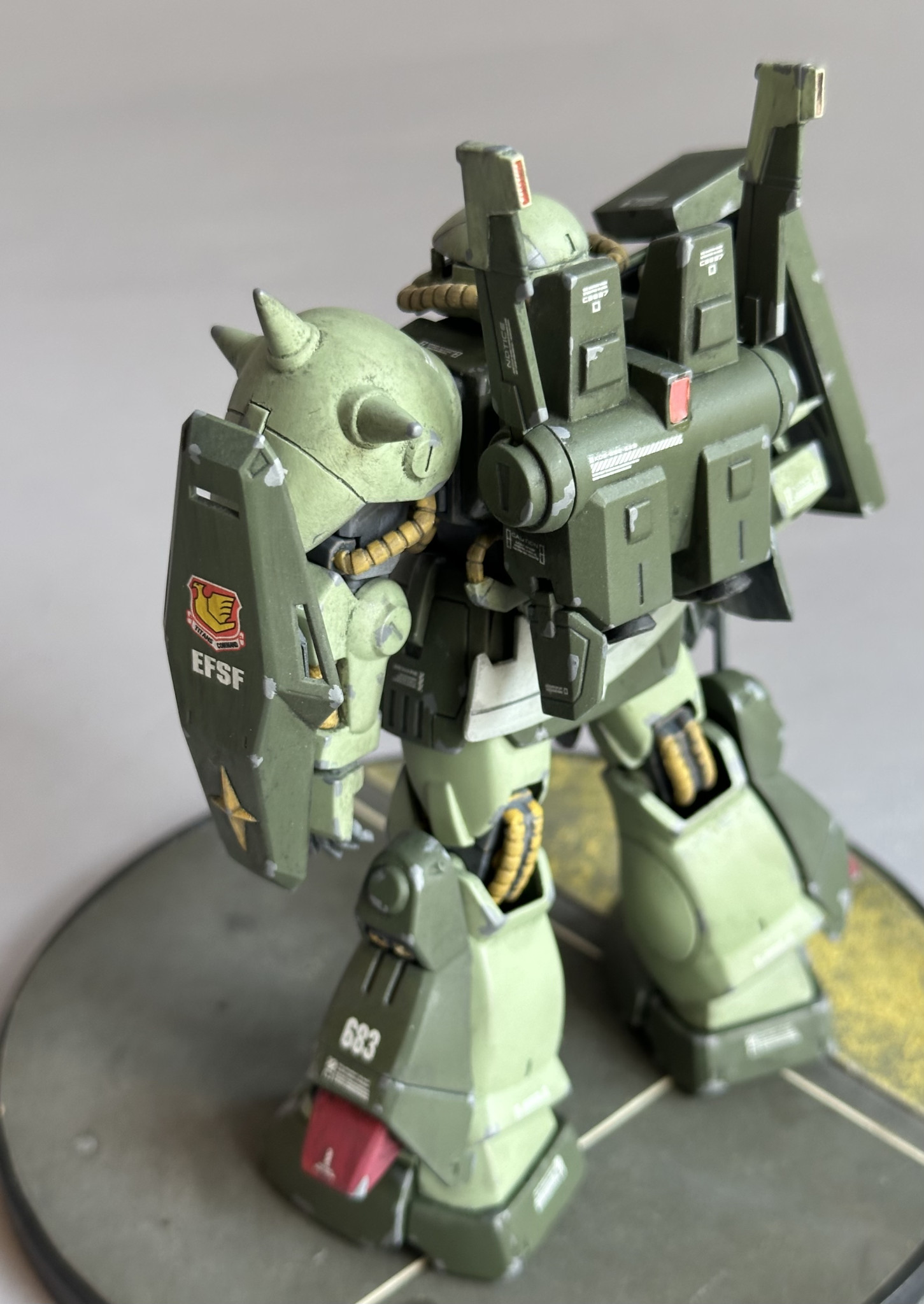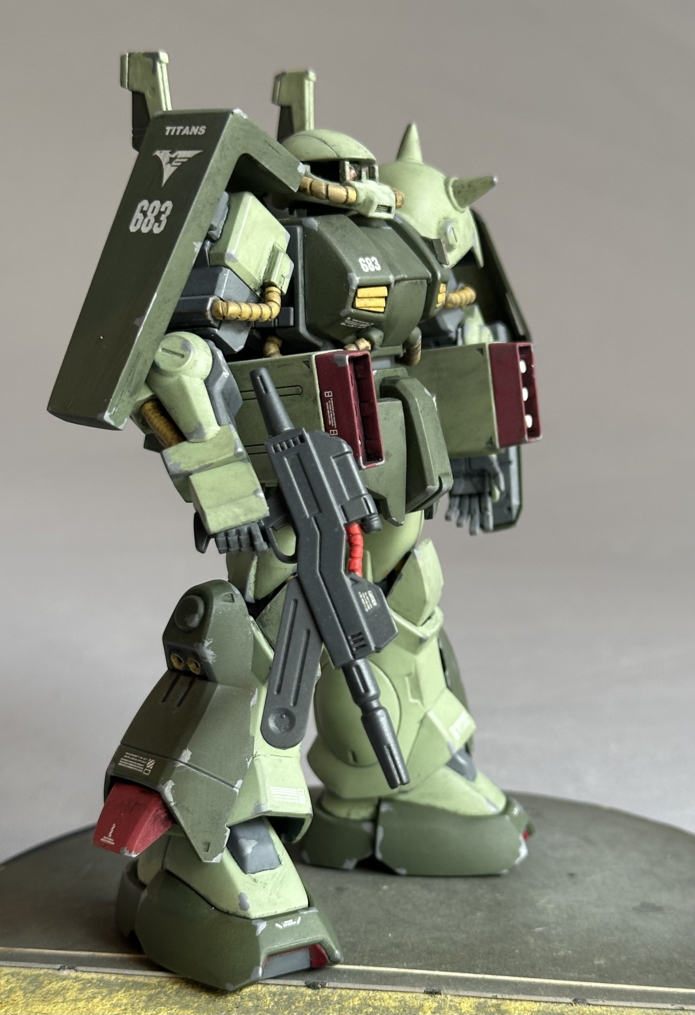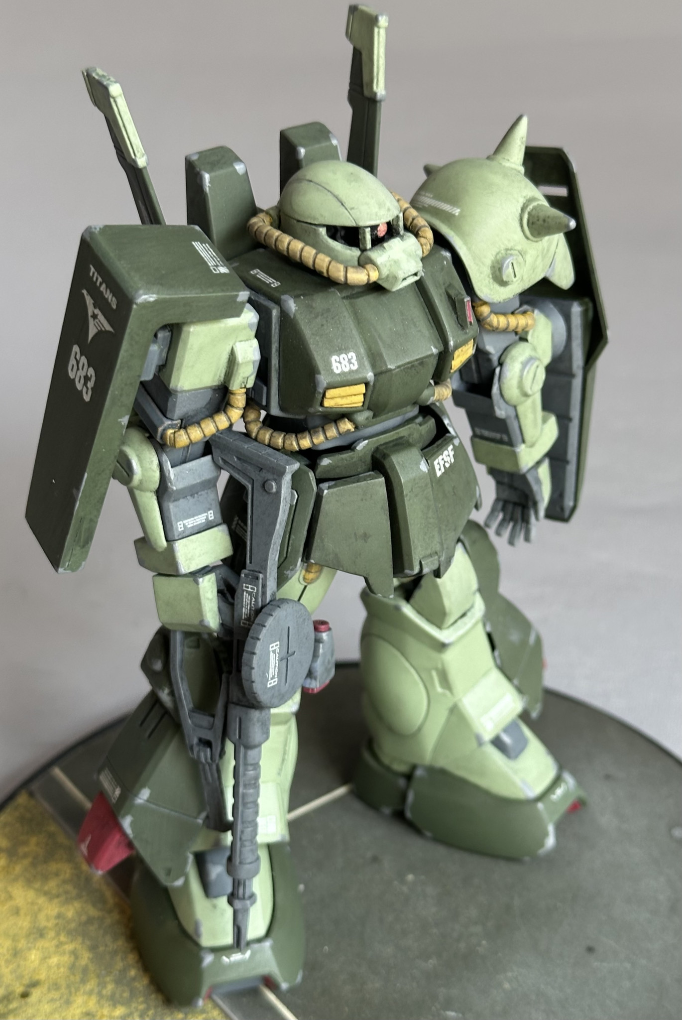 やっぱりハイザックはカッコええですね(zaku-kao2)パイプの処理面倒なのと、二の腕周りのパイプ触りたくないとかよくわかります(zaku-kao5)落ち着いた色味とウェザリング加減がたまりません!