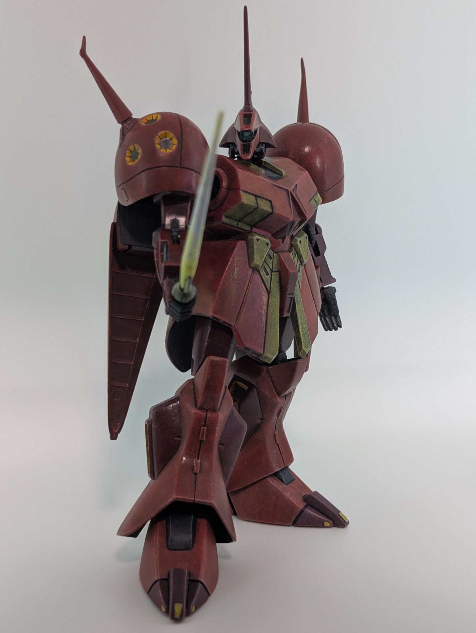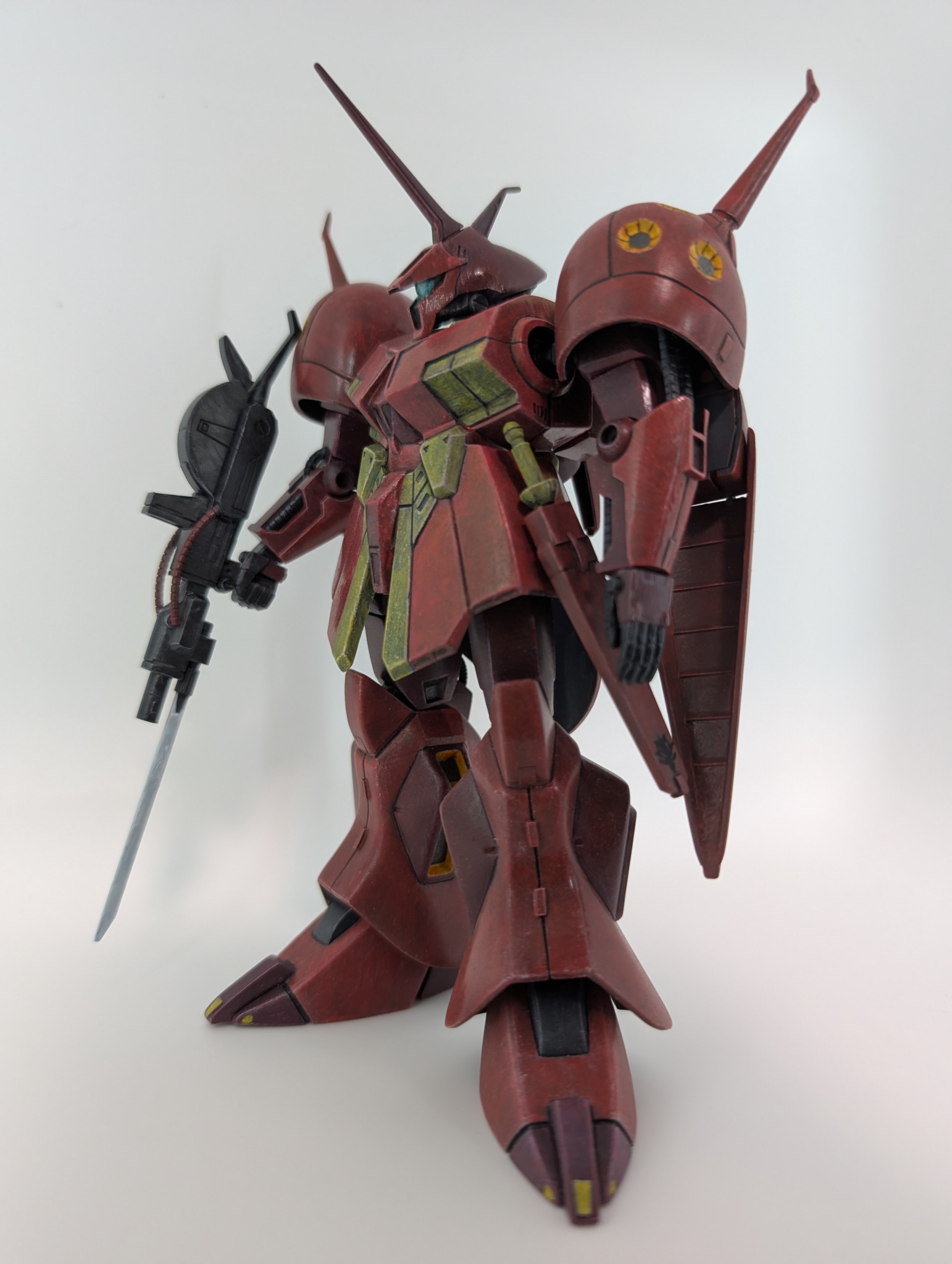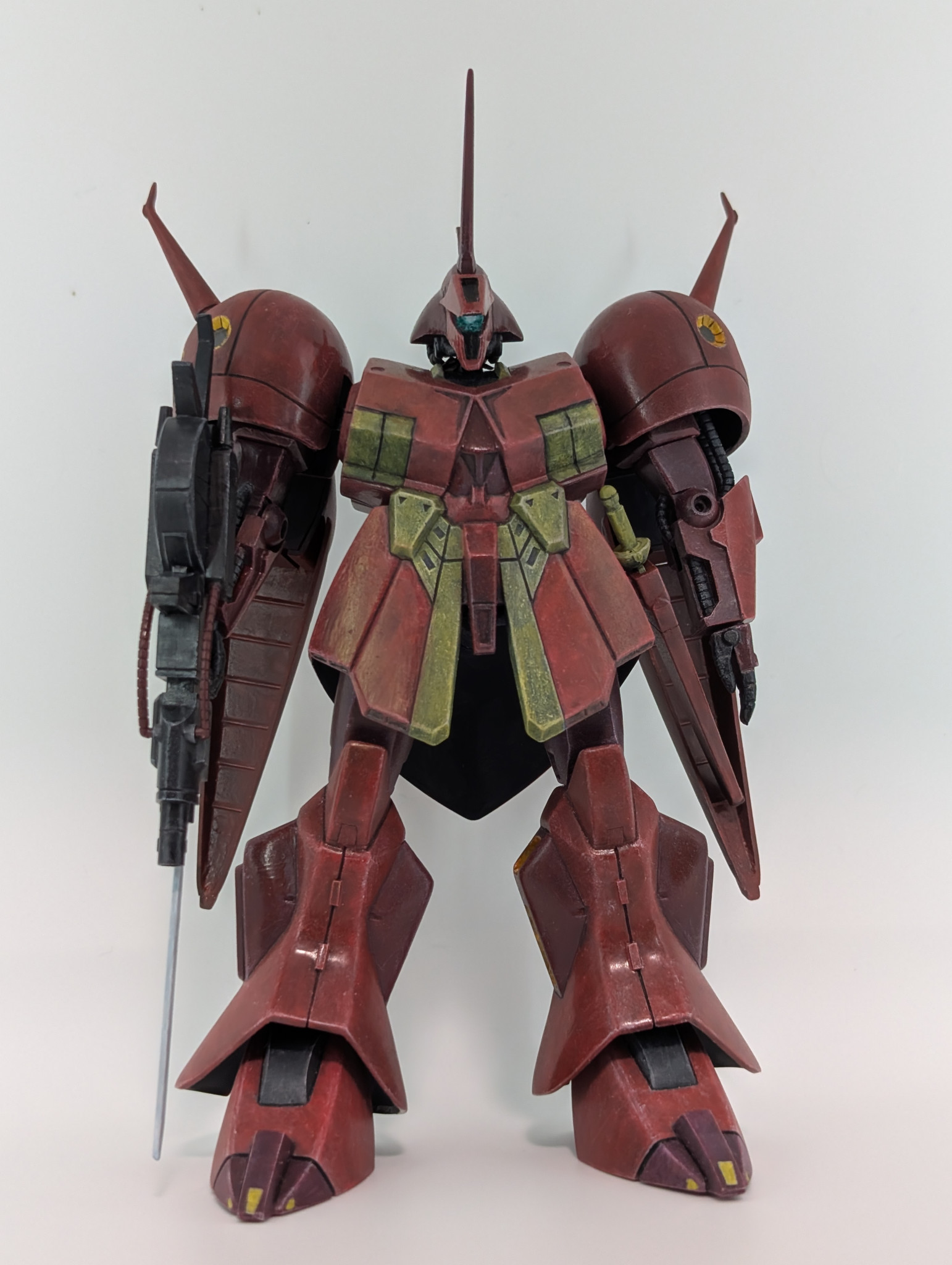 HGの仕様や旧キットの作例では胸の幅のスリム化がスタンダードな感じですが、このRジャジャのデカい胸は大好物です。キャラ様だけに。