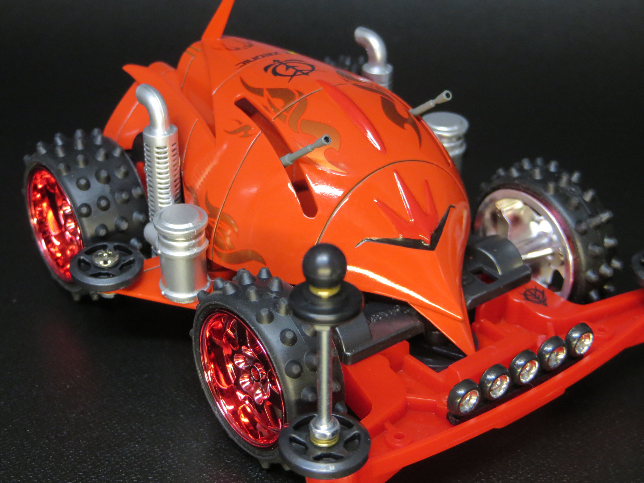 ブルヘッドのボディを単5シャーシに載せてみました。奇抜な感じが気に入っています。