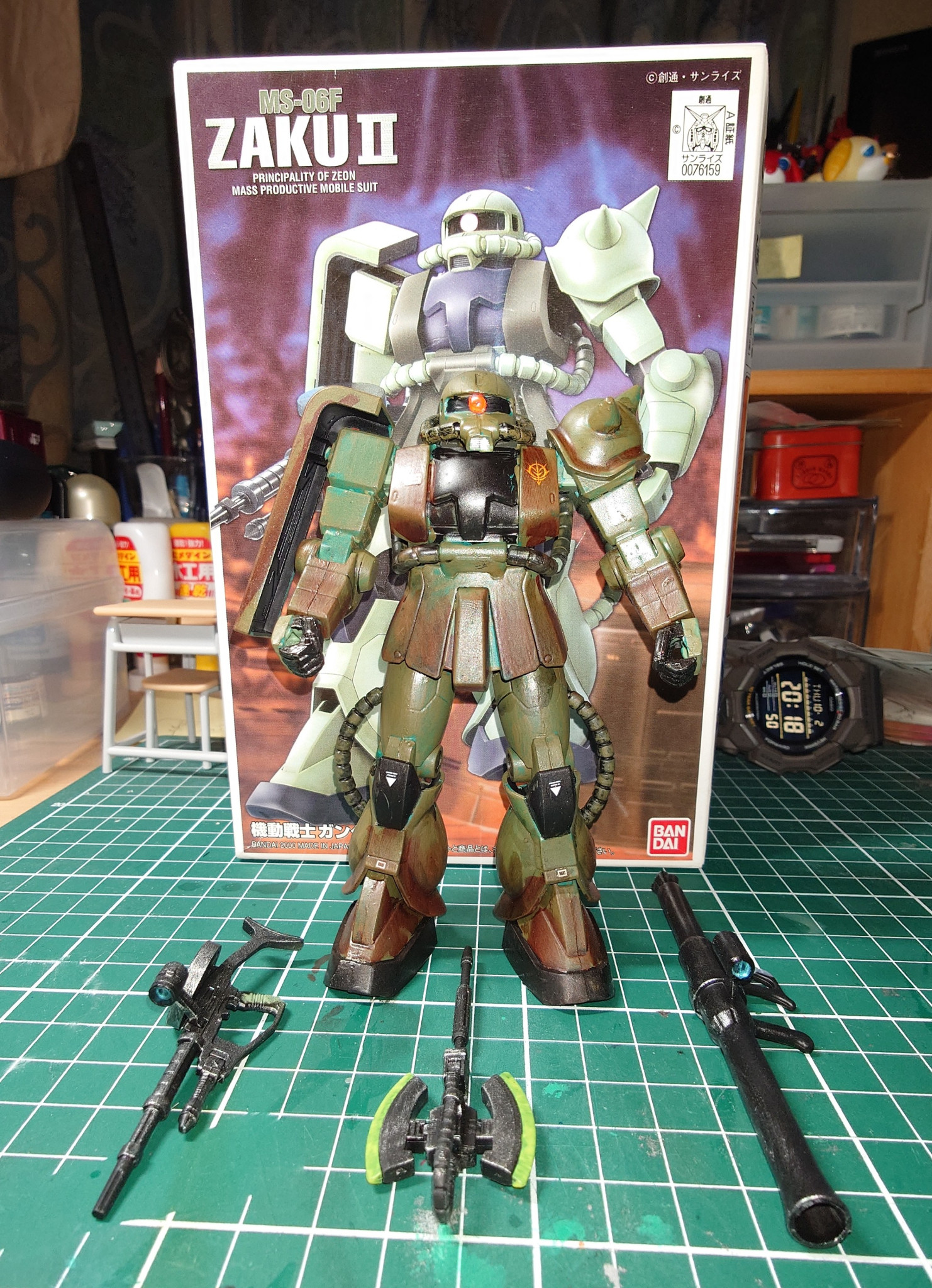 皆様、おひさしブリティッシュ作戦! 忙しい9月をくぐり抜け、やっと一息つけるようになりました 忙しいとはいえ、今回はFGザクを組んでいました あの緑一色のモナカ構造の古めのキットです