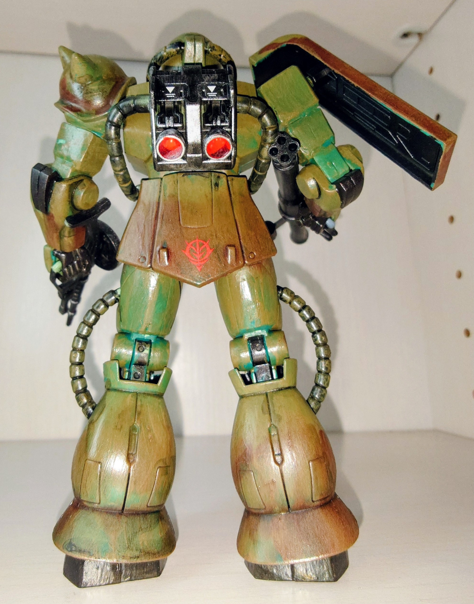背部も手は抜いていません 今回はFGをHG並みに仕上げてみました アクリジョンによる筆塗り全塗装 カーキとメタルブラック、つや消しブラックを使っています