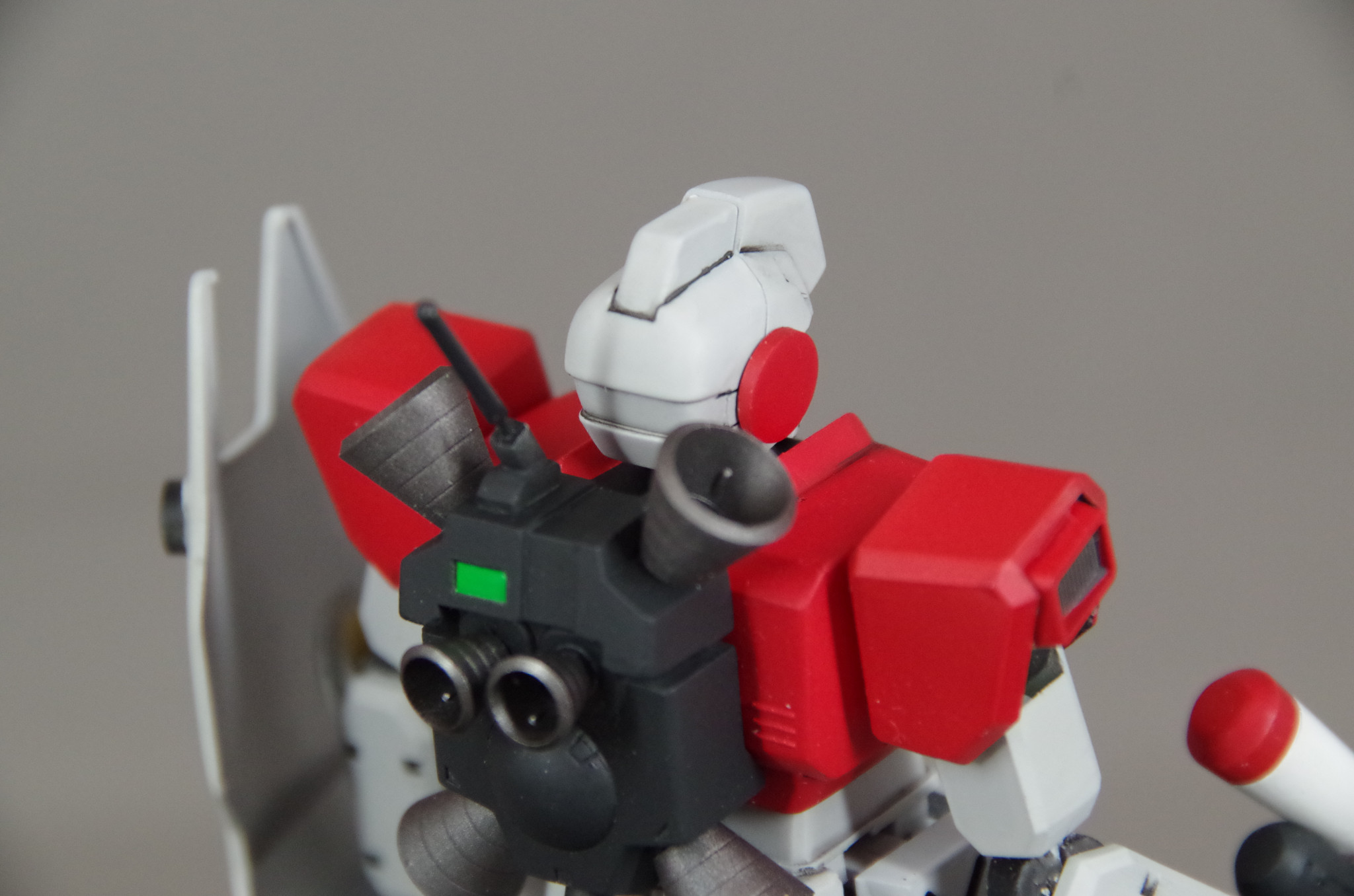 襟元にあったアンテナはバックパックの上部に位置を変更し、真鍮線やプラ棒で製作しています。